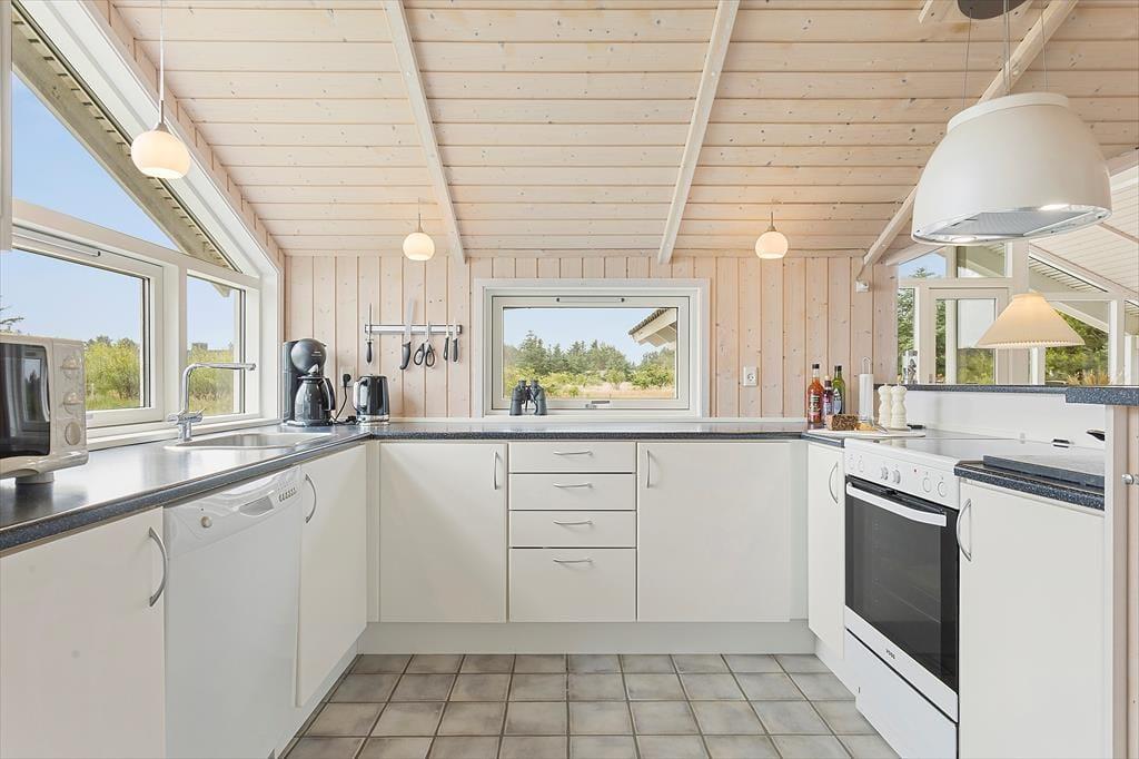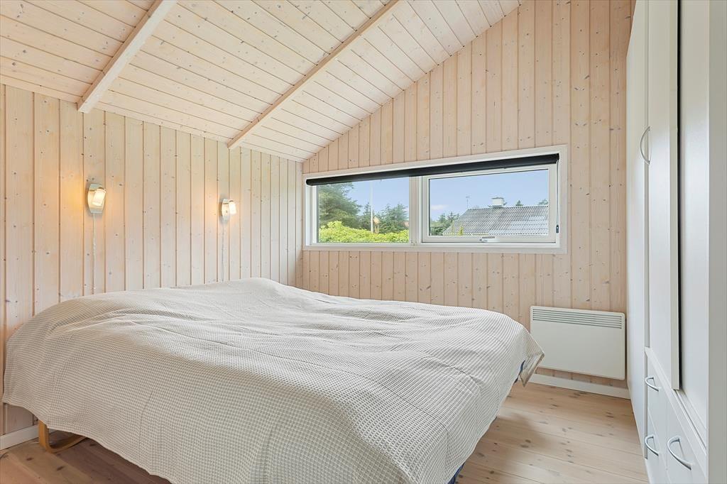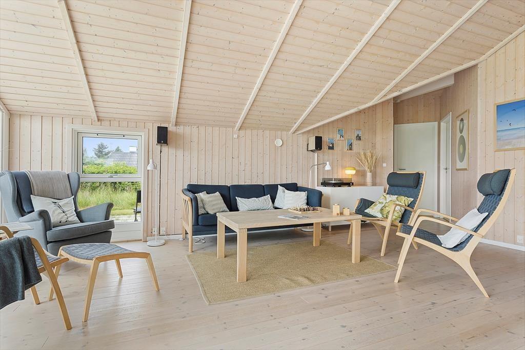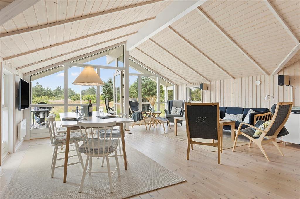 Når du træder ind i dette lyse og indbydende sommerhus, vil du straks føle dig hjemme. Huset er indrettet med loft til kip og store vinduespartier, som sikrer et fantastisk lysindfald hele dagen. Den åbne planløsning kombinerer køkken og stue, hvilket gør det nemt at deltage i samtalen, mens du forbereder måltiderne. Her er tre dejlige soveværelser, hvoraf to har dobbeltsenge, og det tredje har to enkeltsenge, hvilket gør det ideelt til både familier og venner. Sommerhuset har desuden et badeværelse med både spabad og sauna samt et ekstra gæstetoilet.