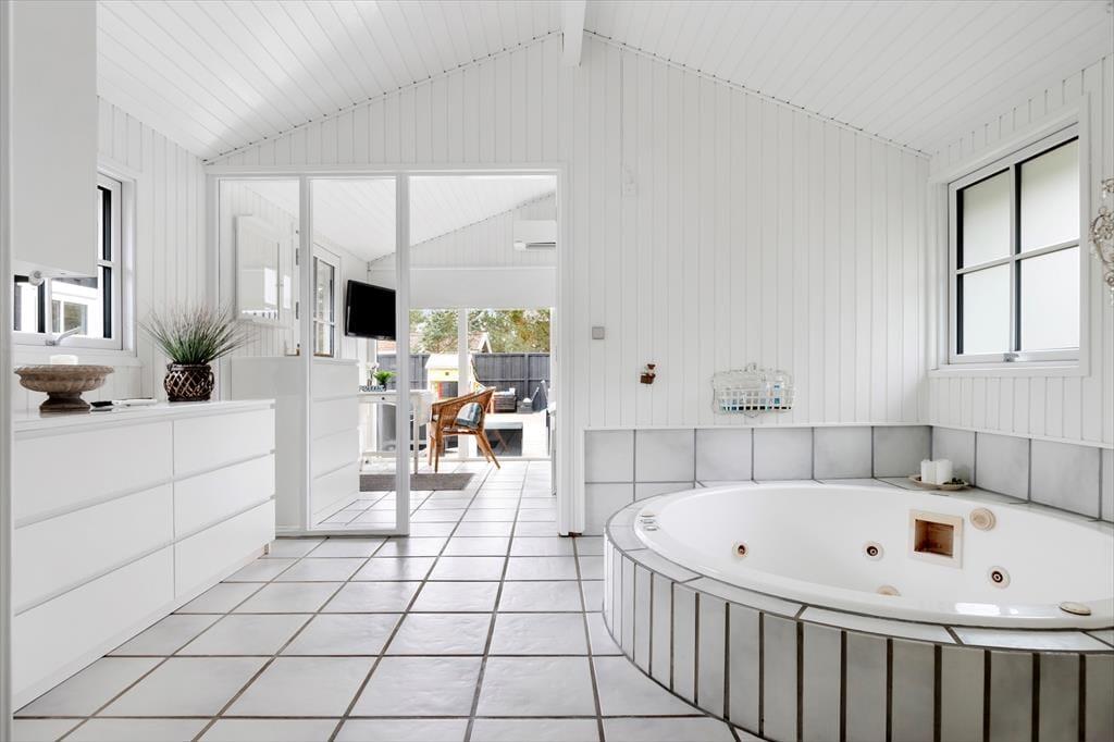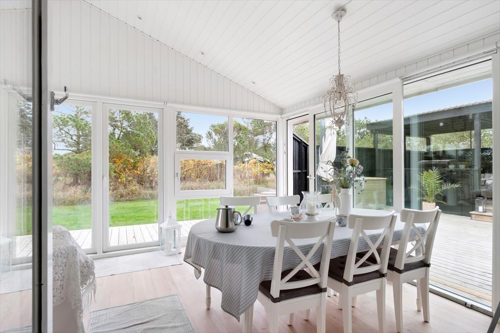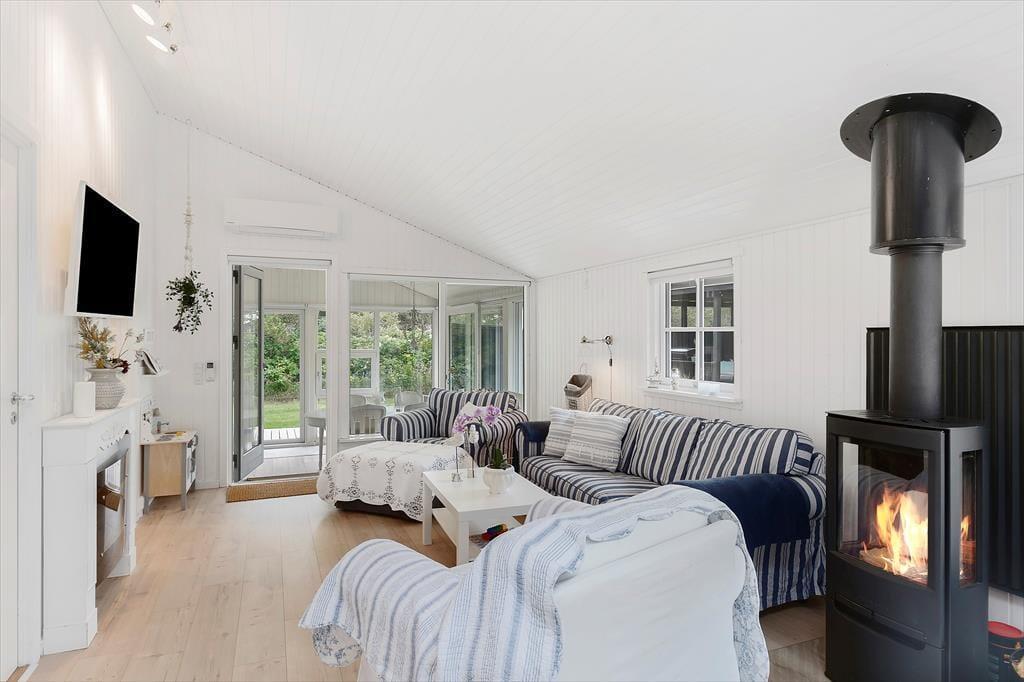 Indenfor i sommerhuset bliver du mødt af et indbydende og lyst interiør. Den store og funktionelle udestue byder på ekstra plads til afslapning, mens hemsen giver børnene et sjovt og hyggeligt sted at lege og sove. Sommerhuset rummer tre værelser og to badeværelser, så der er god plads til hele familien. Stuen er udstyret med både en brændeovn og en elektrisk pejs, hvilket skaber en hyggelig atmosfære på kølige aftener. Køkkenet ligger i åben forbindelse med stuen, så du kan deltage i samtalen, mens du tilbereder lækre måltider af lokale råvarer. Annekset er en særlig perle med sin wellness-afdeling, der inkluderer en sauna, spa, bruser og toilet samt en ekstra soveplads. Her kan du virkelig forkæle dig selv og slappe af efter en dag fyldt med oplevelser.