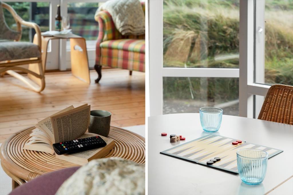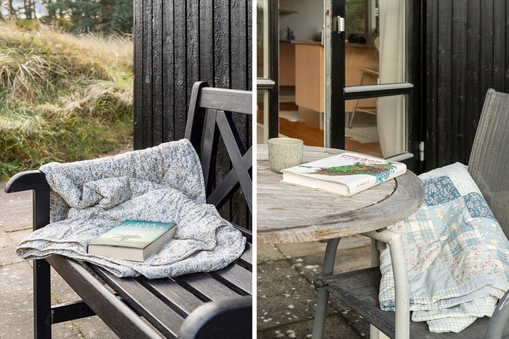 De dejlige terrasser mod syd og øst indbyder til afslapning fra morgen til aften. Her kan du nyde din morgenkaffe i solens første stråler, spille spil i skyggen midt på dagen eller tilberede aftensmaden på grillen, mens solen langsomt sænker sig. Grunden er omgivet af frodig natur, der skaber en fredelig oase, hvor børnene kan lege, og de voksne kan dase med en bog eller blot nyde stilheden. Med kun en kort gåtur til stranden kan du få sand mellem tæerne og en dukkert i Vesterhavet, når lysten melder sig.