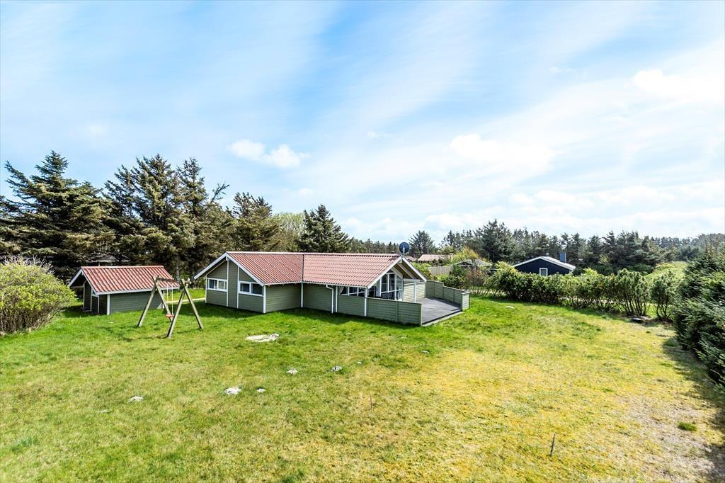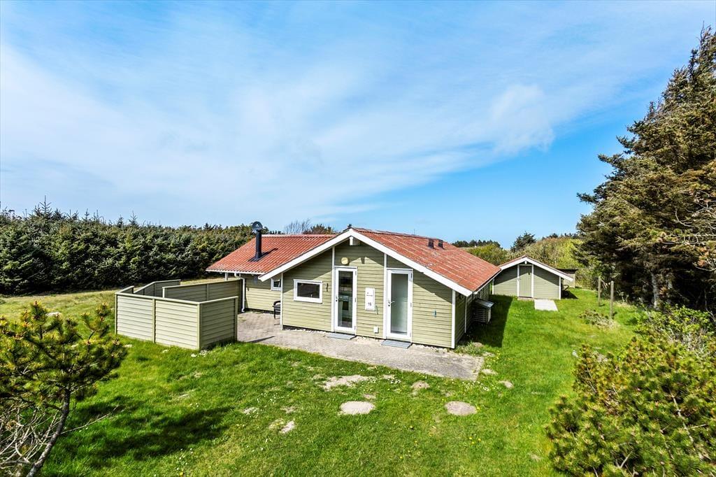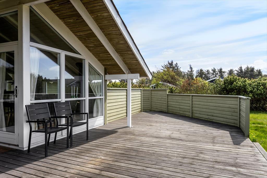 Sommerhusets ugenerede beliggenhed og omkringliggende natur gør det oplagt at nyde livet udenfor, når vejret tillader det. Her er der plads til, at både små og store feriegæster kan slappe af og nyde de fredfyldte omgivelser på terrassen eller lege på græsplænen. De åbne terrasser er skønne opholdspladser, hvor I kan starte dagen med morgenkaffe i den friske luft eller runde af med en grillaften, når solen går ned. Terrassens flere hyggekroge gør det muligt at finde læ eller sol dagen igennem, og det er nemt at finde sin favoritplads, hvor I kan dase, læse en bog eller blot lade tankerne vandre til lyden af naturen omkring jer.
