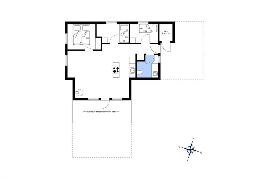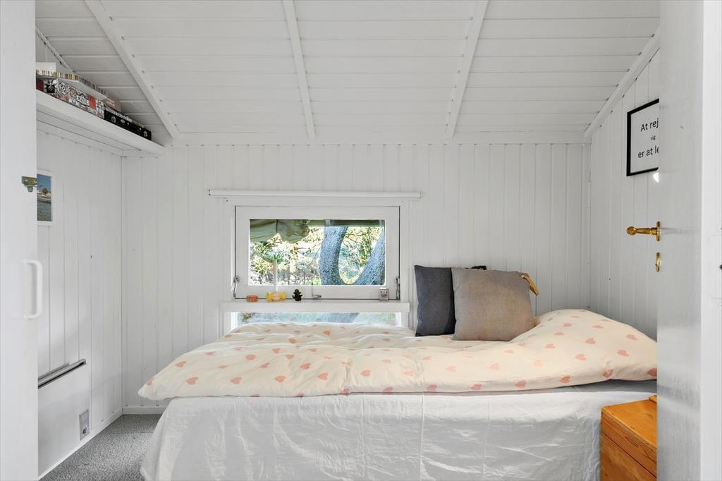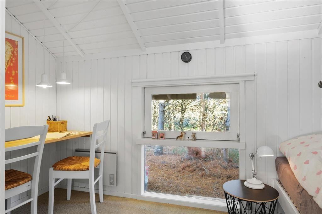 Når du træder ind i sommerhuset, mødes du af et lyst og åbent opholdsområde med loft til kip, der skaber en fantastisk rummelighed og lysindfald. Den åbne forbindelse mellem køkkenet og stuen giver et fantastisk samspil, og herfra har du udsigt til de flotte klitter, der kan ses gennem de store vinduer. Køkkenet er godt udstyret og ideelt til madlavning i fællesskab – og når maden er klar, kan du nyde den omkring spisebordet, mens solen strømmer ind i rummet. Sommerhuset byder på tre hyggelige soveværelser, der indbyder til en god nats søvn efter en aktiv dag. Det eneste badeværelse er indrettet med smag, og her finder du alt, hvad du behøver til dit daglige velvære.