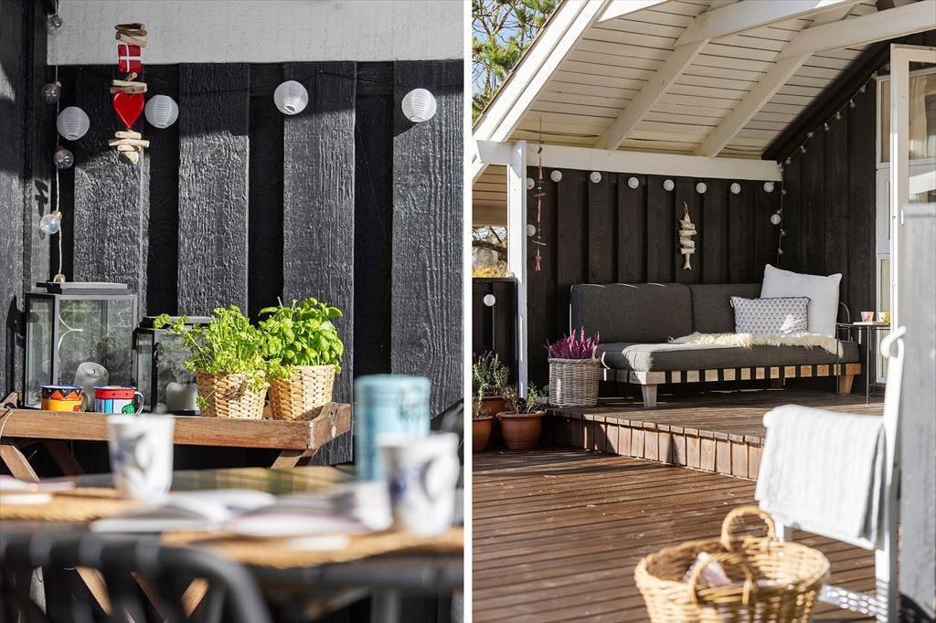 Udenfor kan du virkelig nyde den afslappede ferieatmosfære. Den overdækkede terrasse giver mulighed for at tilbringe tid udenfor, uanset vejret. Det er det perfekte sted at nyde morgenkaffen eller slappe af med en god bog, mens du lytter til lyden af fuglene i haven. Den store naturgrund omkring huset giver rig mulighed for både leg og afslapning, og med den korte afstand til stranden kan du hurtigt finde vej til den brede sandstrand for en forfriskende dukkert. Terrassen er også ideel til at tilberede middag på grillen, mens solen langsomt går ned, og den rolige stemning breder sig omkring dig.