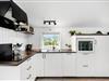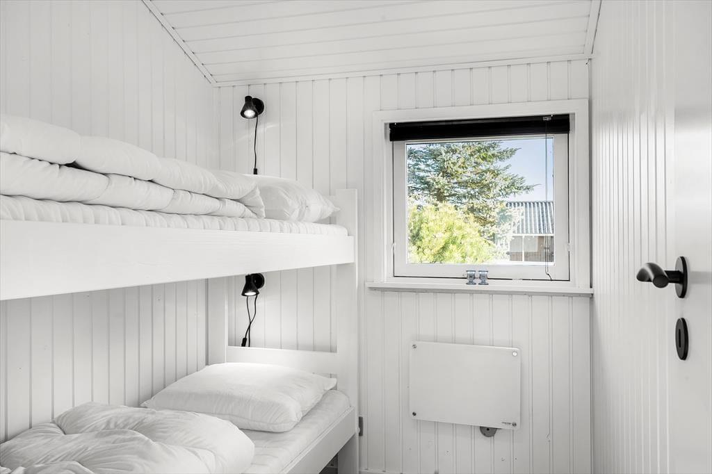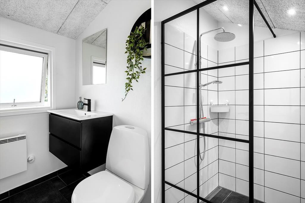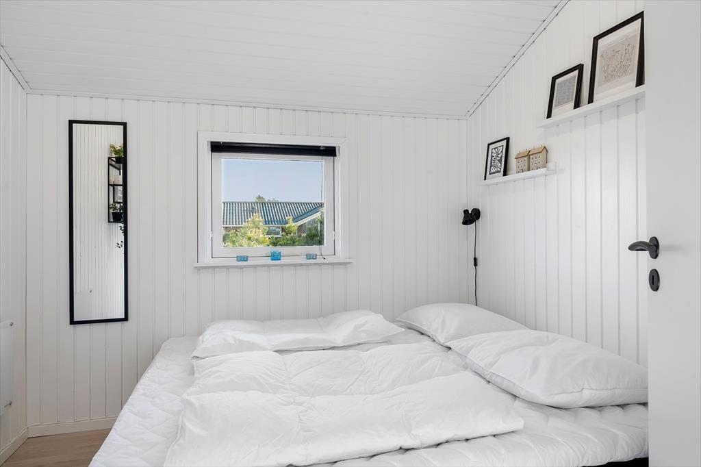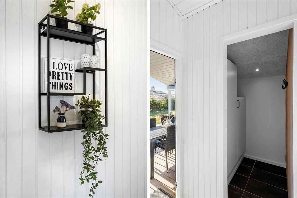 Indenfor mødes du af en lys og varm atmosfære, der straks indbyder til afslapning. Sommerhuset er hyggeligt indrettet med sans for detaljen og skabt til det gode samvær. Den åbne planløsning mellem køkken, spiseplads og stue gør det nemt at være sammen, selv når nogle laver mad, mens andre spiller spil eller nyder en stille stund i sofaen. I stuen er der brændeovn, som bidrager med både varme og hygge på kølige dage – lyden af knitrende ild og duften af træ giver en særlig stemning, når mørket falder på. De store vinduer lukker lyset ind og skaber en dejlig forbindelse til naturen udenfor, og fra stuen er der direkte adgang til terrassen, så det er let at lade inde- og udeliv smelte sammen.