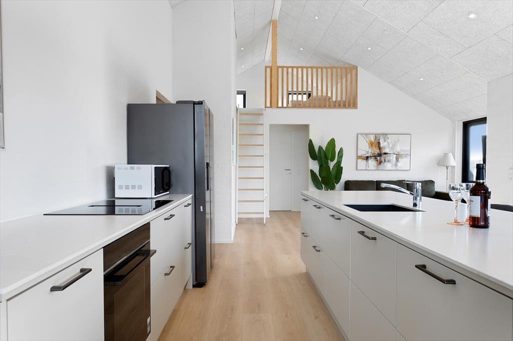 På Kringelbækvej 27 i Grønhøj venter et moderne og nyopført sommerhus, der kombinerer stilfuld indretning med ægte feriehygge. Her kan hele familien finde sig til rette og nyde både luksus og nærhed til naturen – uanset om det er afslapning i spabadet, en frisk dukkert i Vesterhavet eller hyggelige stunder i solen på terrassen, der står øverst på ferieønskelisten. Beliggenheden mellem Løkken og Blokhus gør huset til et skønt udgangspunkt for en ferie fyldt med oplevelser.