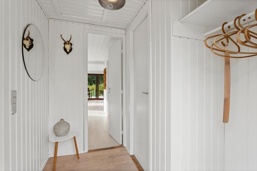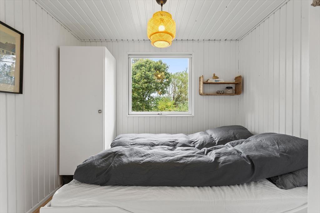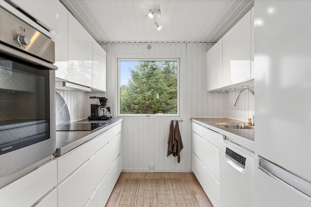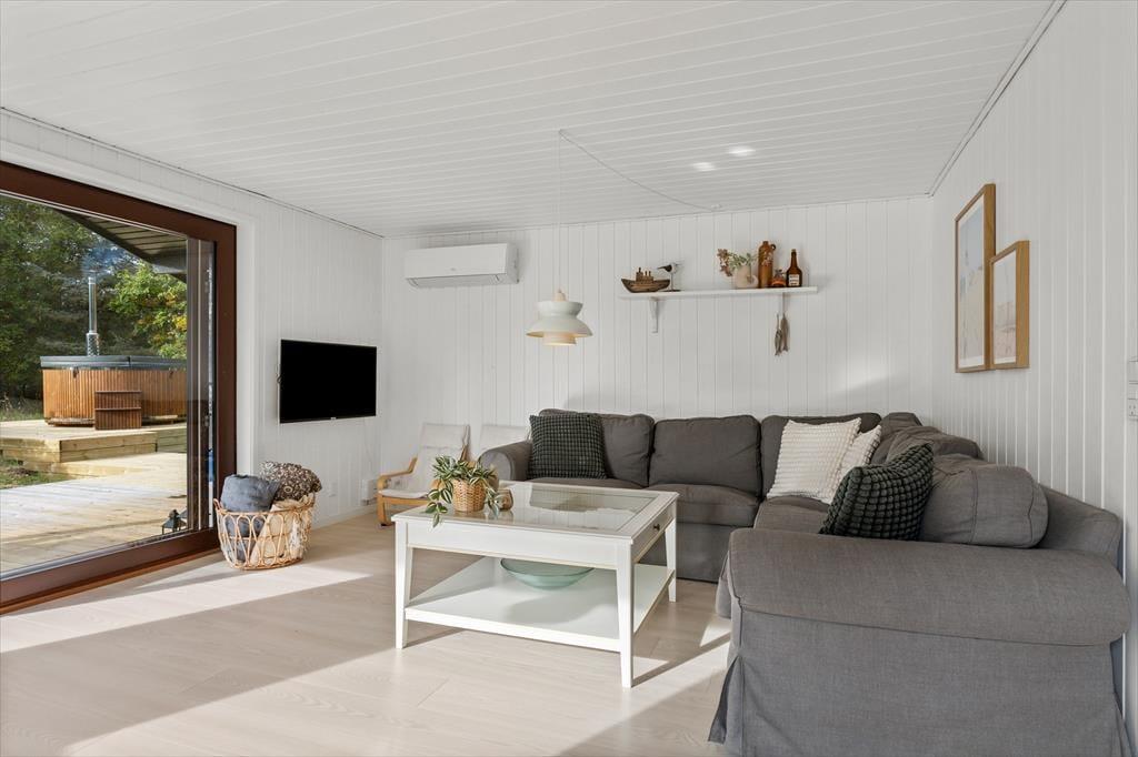 Sommerhuset imponerer med en rummelig og lys stue, hvor de store vinduer lukker dagslyset ind og skaber en varm og indbydende atmosfære. Her kan familien samles til hyggelige stunder eller nyde udsigten til den kuperede grund, hvor børnene kan lege og udfolde sig. Det rummelige køkken gør det nemt at tilberede måltider, samtidig med at samtalen fortsætter rundt om spisebordet. Huset rummer fire værelser, der alle er indrettet med komfort og afslapning for øje, og badeværelset med gulvvarme sikrer, at selv de kølige morgener bliver behagelige. Vildmarksbadet er prikken over i’et, hvor I kan lade krop og sjæl smelte sammen under stjernerne.