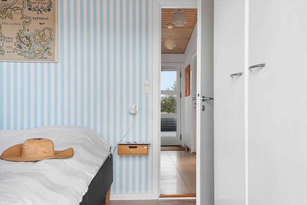 Sommerhuset råder over 72m2 og oser af hygge og charme. Huset er et godt valg for den selektive feriehusgæst og egner sig særdeles godt til et eller to par, som ønsker at komme væk fra hverdagen og sætte afslapning, ro og hygge i højsædet. Det ligger højt og har, fra de store vinduespartier, en dejlig udsigt til klitterne og Vesterhavet fra både køkken og opholdsrum - her kan man virkelig få mange gode stunder med dagens avis eller en god bog. Sommerhuset er velholdt, pænt møbleret og indrettet i en lys og venlig stemning. Der er 2 værelser med dobbeltsenge og 1 værelse med en enkeltseng.