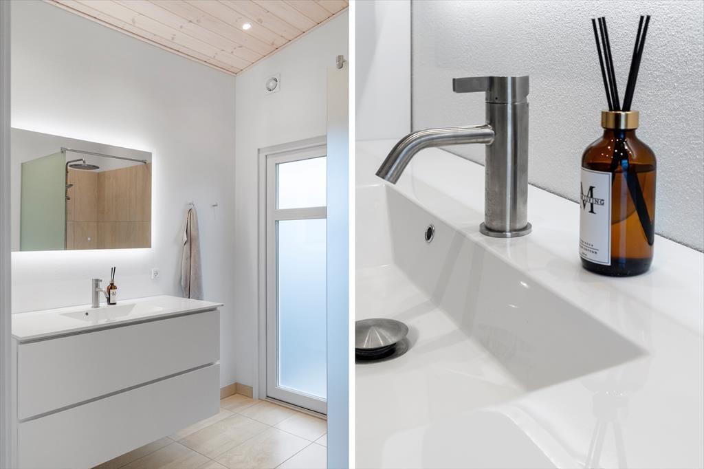 Sommerhuset ligger for enden af en rolig vej, på en 2800m2 stor og flot naturgrund. Her kan man opholde sig i fuldstændig fred og fordragelighed, uden at blive generet af naboer eller forbipasserende. Der er anlagt flotte terrasser på alle sider af huset og den vestvendte terrasse er både aflukket og overdækket, så man altid kan nyde den betagende udsigt i læ fra vinden. Der er havemøbler, liggestole og udendørs muret grill til rådighed.
