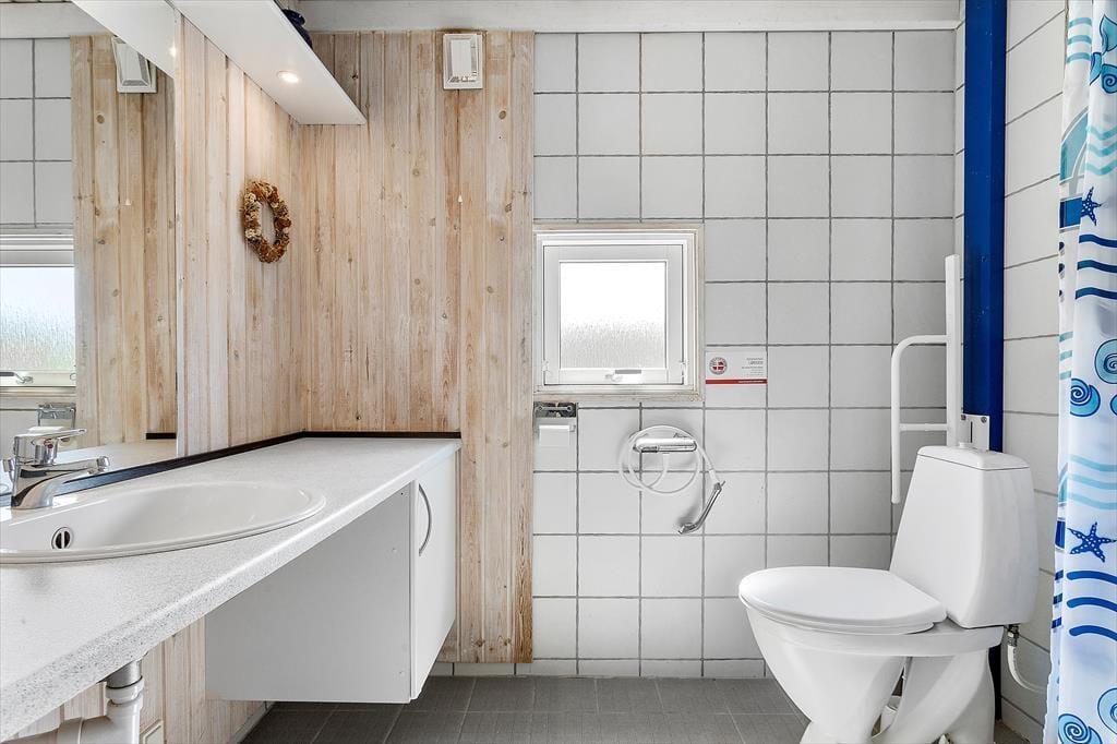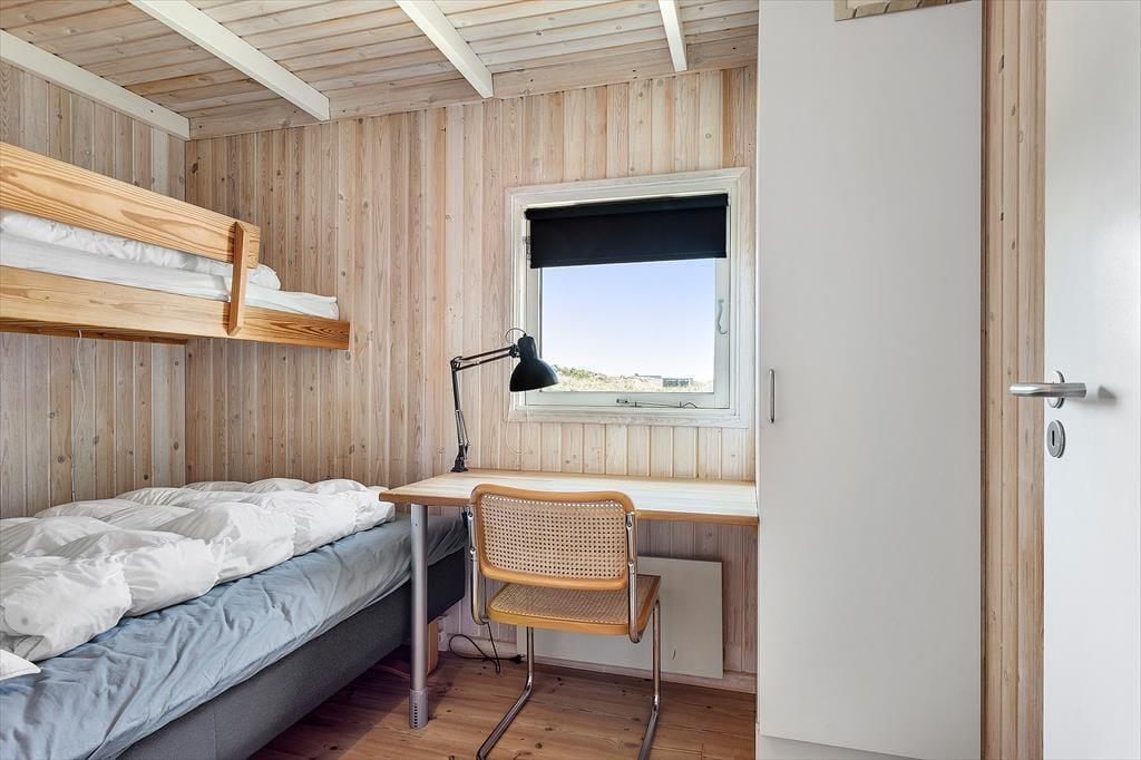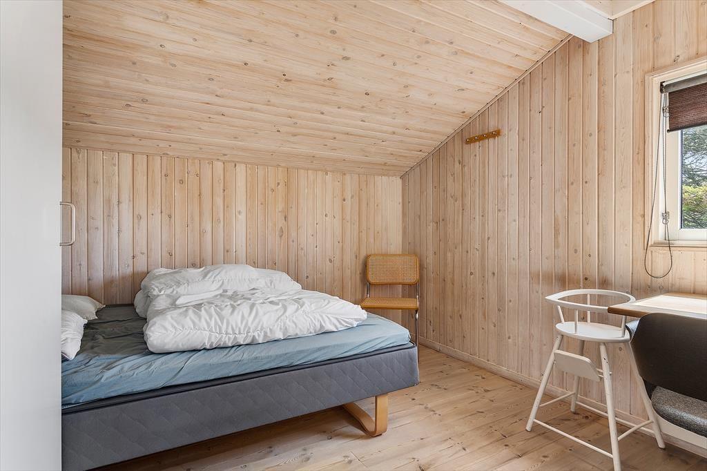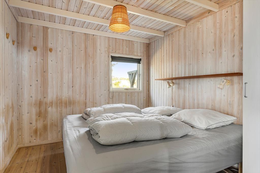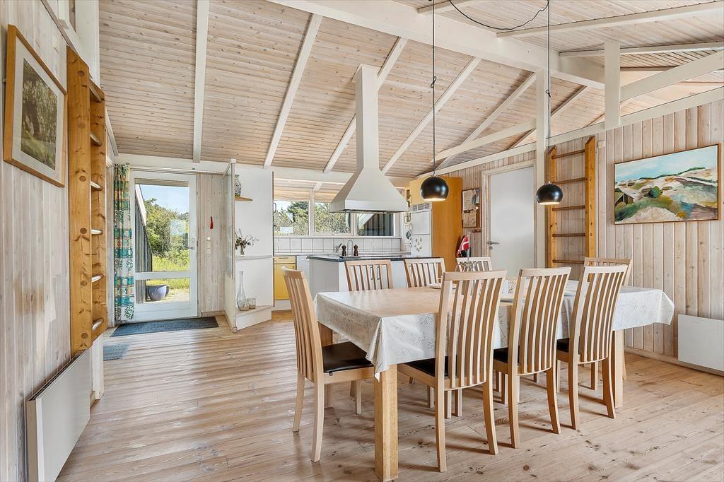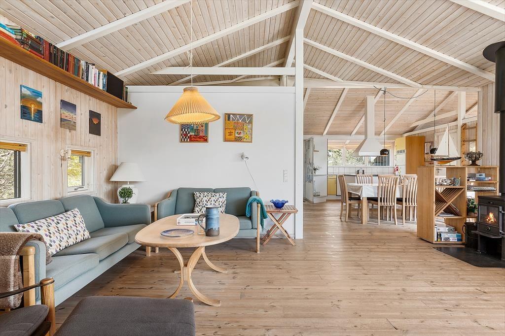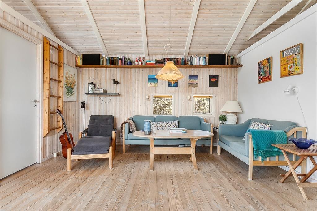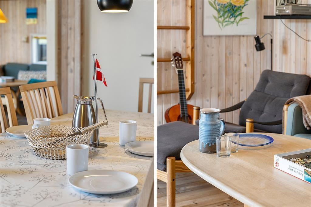 Indretningen i sommerhuset er traditionel, men med mange fine detaljer, som gør at man fra første sekund føler sig godt tilpas her. I alle værelser er der gode sovepladser til alle mand, så den gode søvn kan plejes under ferien. Det ene badeværelse er indrettet således, at en kørestolsbruger kan benytte de tilstedeværende hjælpemidler. I det store køkken-alrum, som glider over i stuen, er der masser af plads og et godt lysindfald som sikrer, at man får hele solnedgangen med i horisonten.
