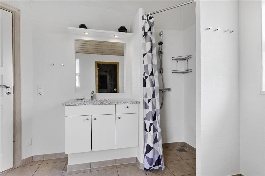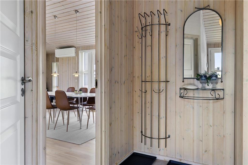 Sommerhuset er bygget med de bedste materialer, og er ualmindeligt flot og smagfuldt indrettet. Fra indgangen har man adgang til et af husets to badeværelser og til et af de tre soveværelser. Fra alle soveværelser har man adgang til det flotte terrasseareal. Spiseafdelingen ligger i forbindelse med det veludstyrede køkken og stuen ligger umiddelbart herefter. De store vinduespartier ved stuerne skaber en dejlig atmosfære året rundt. Fra stuen har man adgang til de to sidste rummelige soveværelser, og det store badeværelse med spa og sauna.