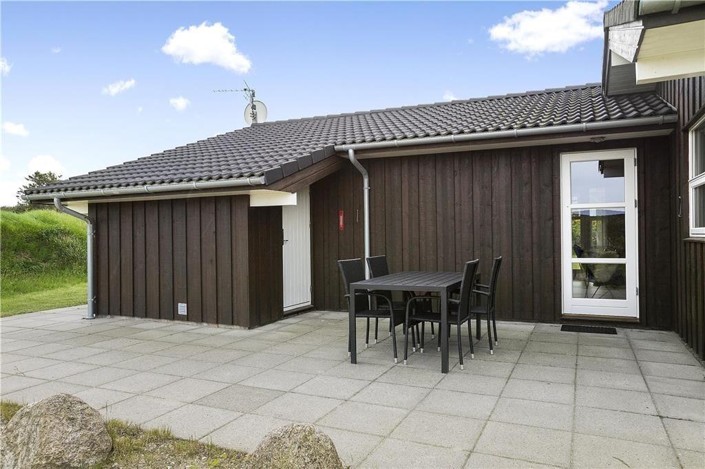 Sommerhuset er beliggende for enden af vejen på en grund, som er omkranset af en lille jordvold. Et flot terrasseareal omgiver hele huset og fra de mange terrasser kan man nyde solen hele dagen.