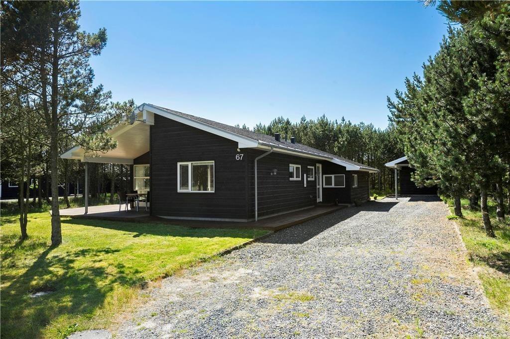 Den store naturgrund er omkranset af træer, så man er afskærmet fra naboer og forbipasserende. Plænen lægger op til boldspil og gemmeleg, mens de mindste vil fryde sig over gyngen. De voksne kan nyde sommeren på den store træterrasse, som løber hele vejen rundt om sommerhuset. Det er således altid muligt at finde en solplet, og trænger man til at køle lidt af, kan man sætte sig ind på den del af terrassen, som er overdækket. Her er det også rart at spise eller sidde i læ om aftenen. Bilen kan parkeres og stilles i skygge i carporten.