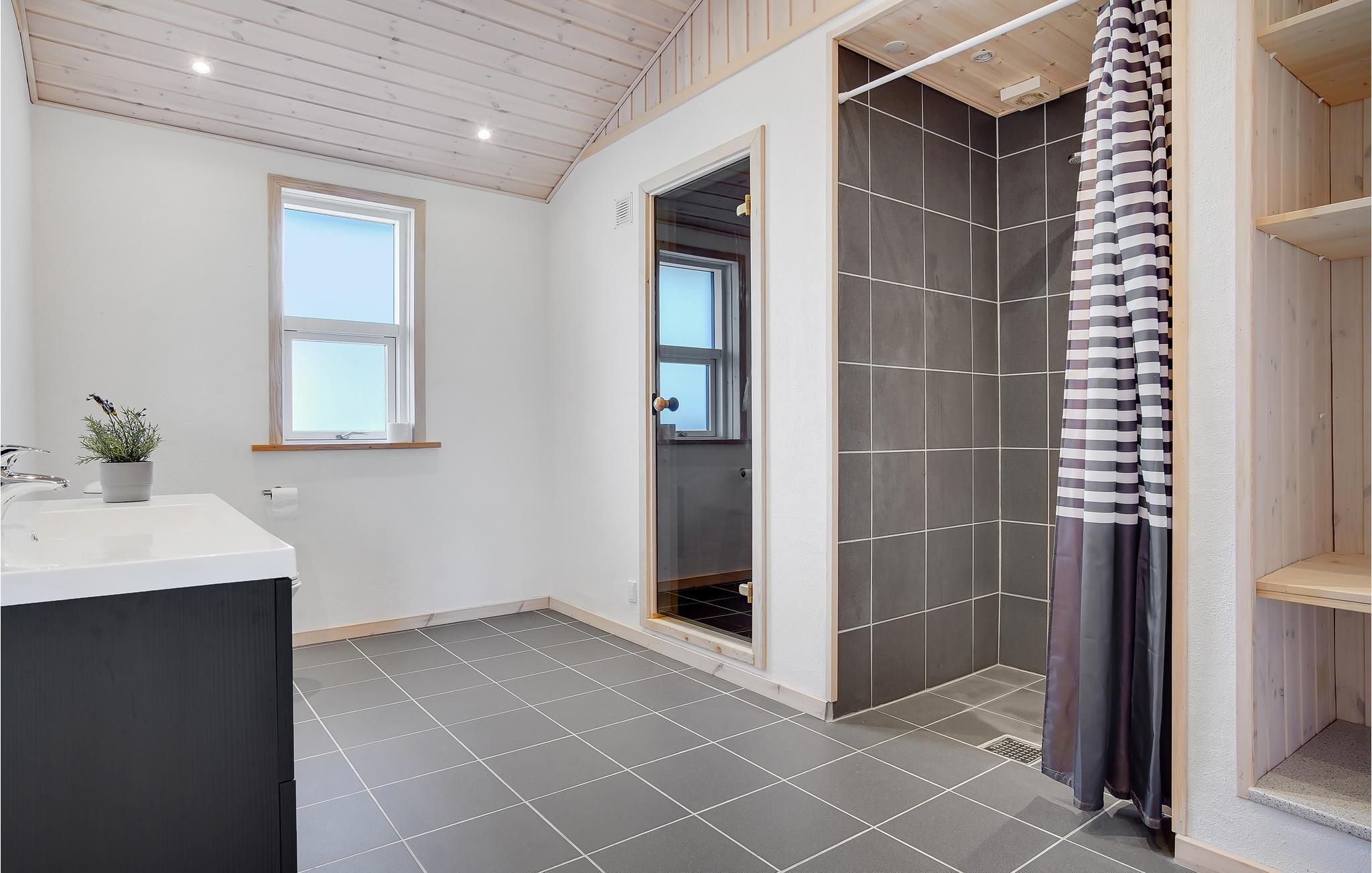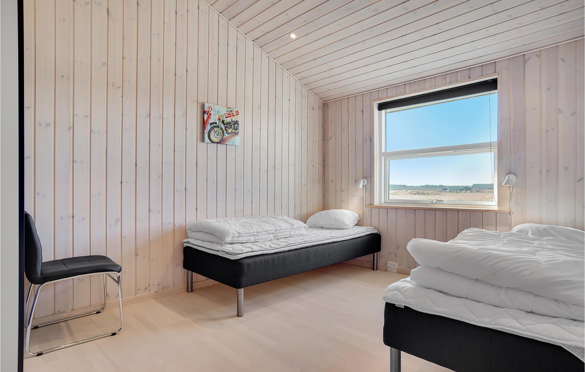 På en stor åben grund og i gåafstand til det fascinerende Vesterhav ved Grønhøj, ligger dette skønne feriehus. Huset byder på 4 gode, store soveværelser og 2 badeværelser, det ene med spabad og det andet med sauna. I husets kerne ligger køkkenet i tilknytning til den store, lyse og hyggelige stue. Her kan familien samles om madlavningen, mens andre hygger sig med spil eller en god bog. På den dejlige terrasse kan I nyde en god kop kaffe, mens børn og barnlige sjæle boltrer sig i haven. Endvidere er der lavet et dejligt anneks i tilknytning til huset. Her findes et godt soveværelse, et gæstetoilet samt et aktivitetsbord, hvor der kan dystes i diverse spil. Imellem huset og annekset er der lavet en skøn lille solgård, hvor I kan nyde solstrålerne i læ for vinden.