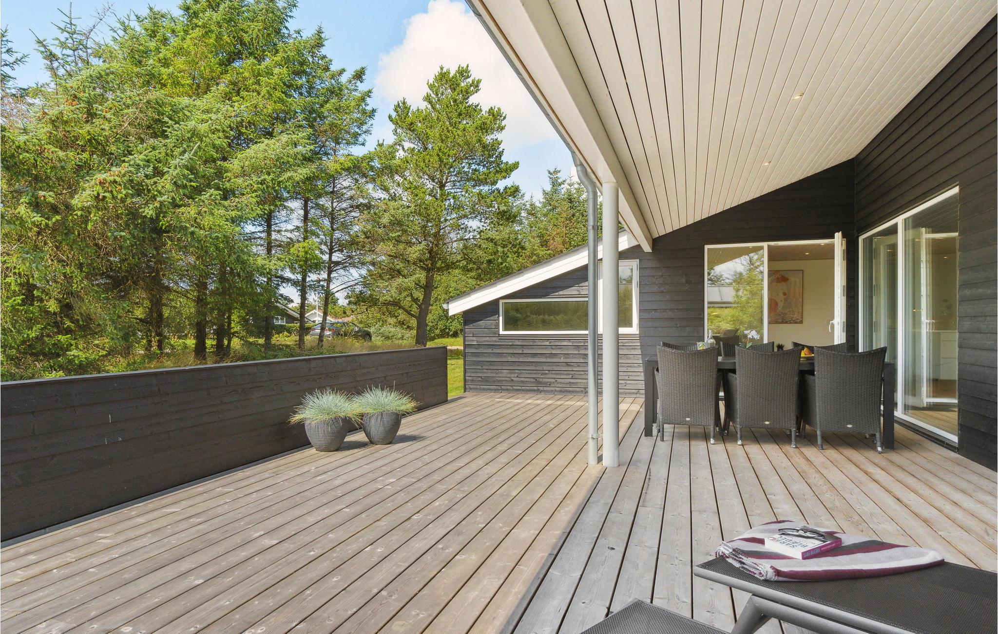 Moderne sommerhus nær Løkken med sauna, spabad og stor overdækket terrasse på stor naturgrund.