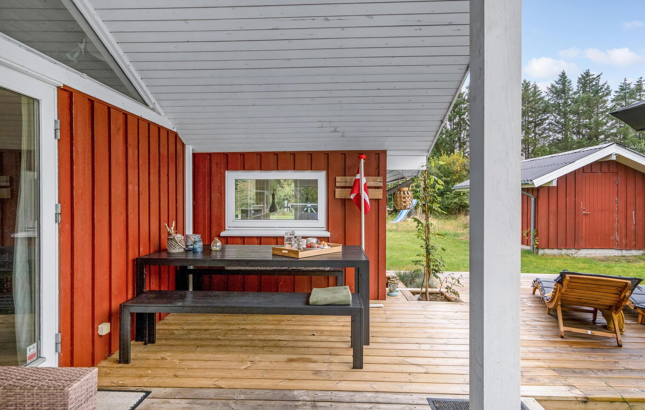 Hyggeligt og lyst sommerhus med stor overdækket terrasse nær Grønhøj Strand.