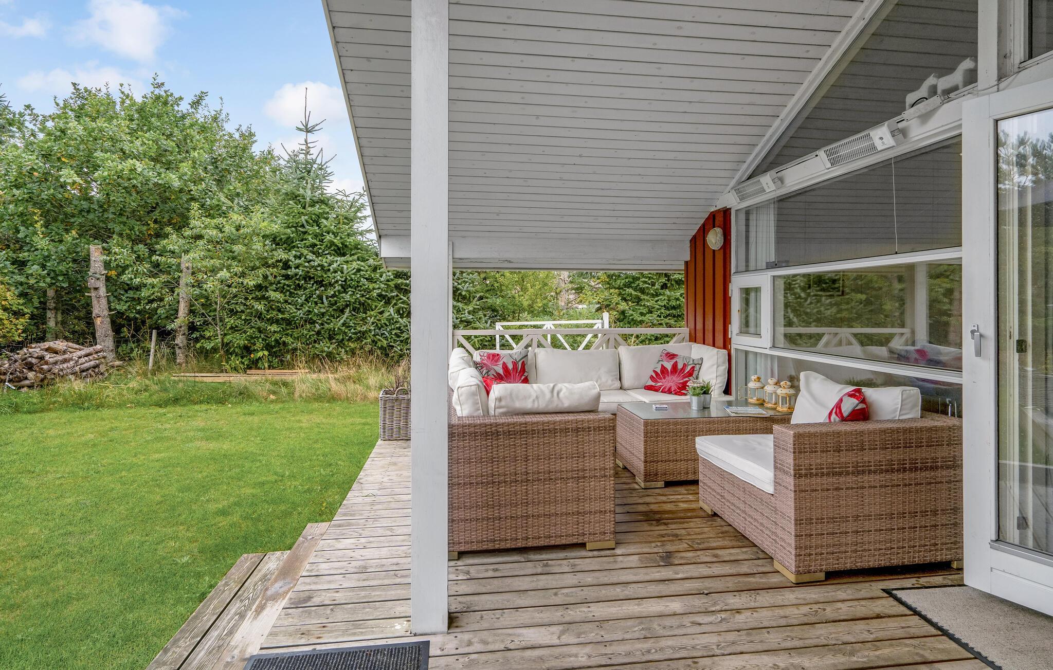 Hyggeligt og lyst sommerhus ved Grønhøj med stor overdækket terrasse og fælles pool i rolige omgivelser.