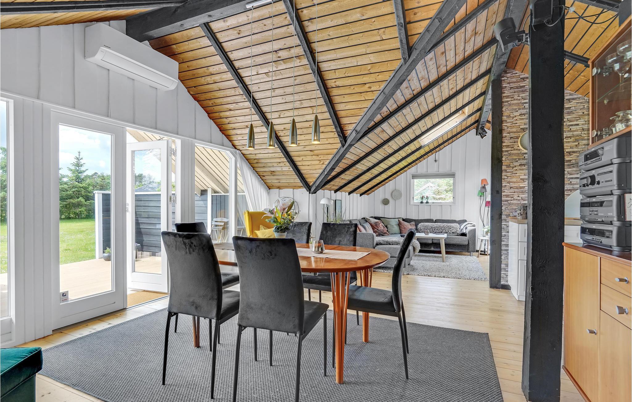 Ikke langt fra kysten ligger dette attraktive hus i et skønt ferieområde. Huset er lyst og indbydende og perfekt til en familieferie. Glæd jer til hyggelige stunder i den rummelige stue, rundt om spisebordet eller i sofahjørnet. Få varmen foran brændeovnen efter en lang gåtur i årets kolde måneder.