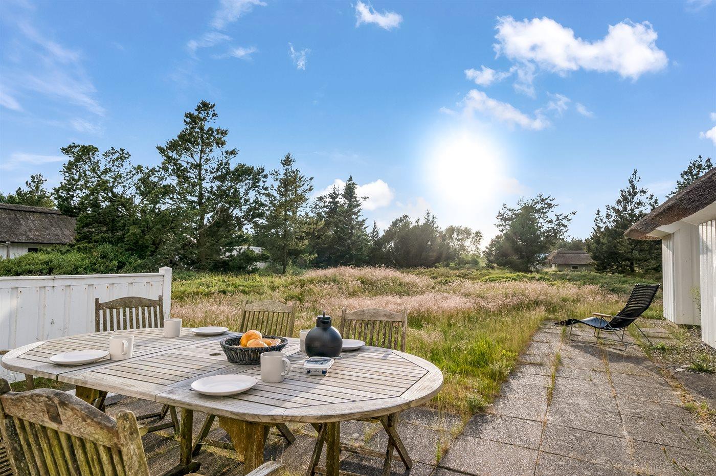 Ferieboligen er beliggende på en 2100 m² stor naturgrund. Der er 1100 m til havet. Nærmeste forretning er beliggende i en afstand af 5000 m. Der er en golfbane i en afstand af 4000 m. Til ferieboligen hører 30 m² terrasseareal. Grill til rådighed. Parkering ved ferieboligen.