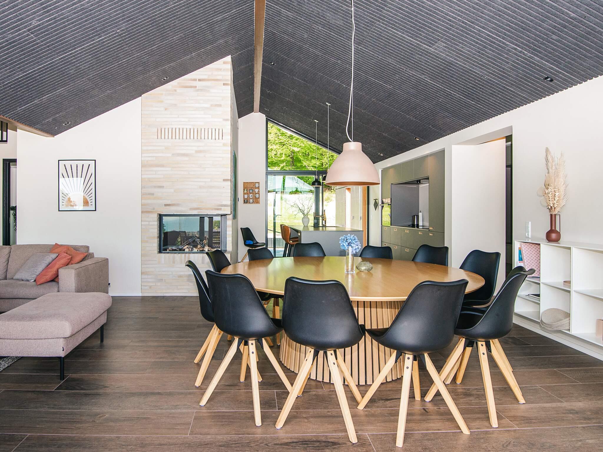 Beliggende lidt hævet over det smukke Lillebælt, kun 500 meter fra kysten, tilbyder dette moderne og klimavenlige feriehus de perfekte rammer for en mindeværdig ferie. Huset er designet til op til 12 gæster og kombinerer moderne komfort med gennemtænkte detaljer, alt sammen omgivet af fredfyldt naturlig skønhed. Med den fredelige skov som nærmeste nabo og vid panoramaudsigt over vandet er det et tilflugtssted, der bringer dig tæt på både natur og afslapning.