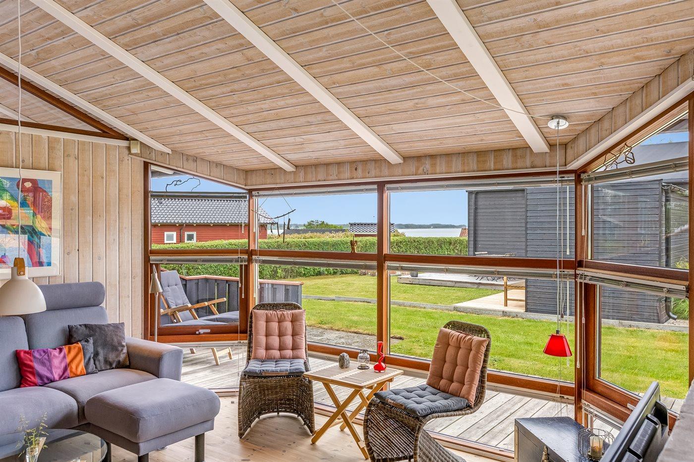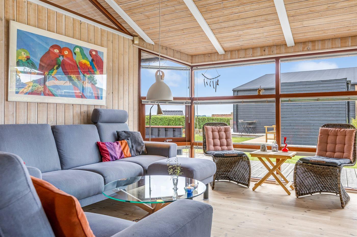 Dejligt sommerhus i Grønninghoved med havudsigt, skov, spa og sauna nær børnevenlig strand.