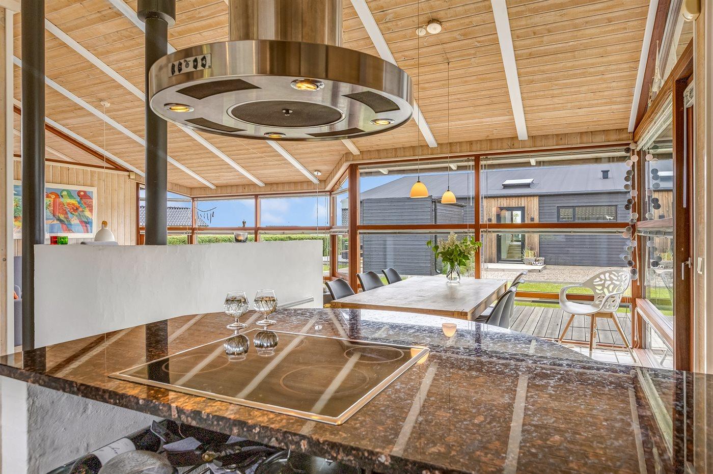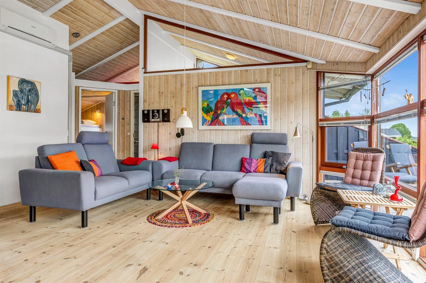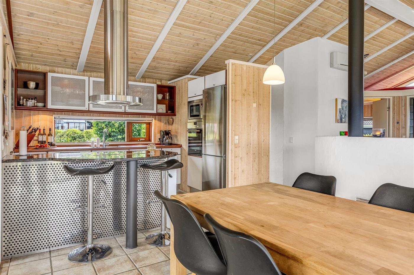 Husets hjerte er det åbne køkken/alrum med fin udsigt til Lillebælt. Spiseafdeling og sofaområde er adskilt af en halvmur. Familien kan være delt i flere grupper og alligevel være sammen.