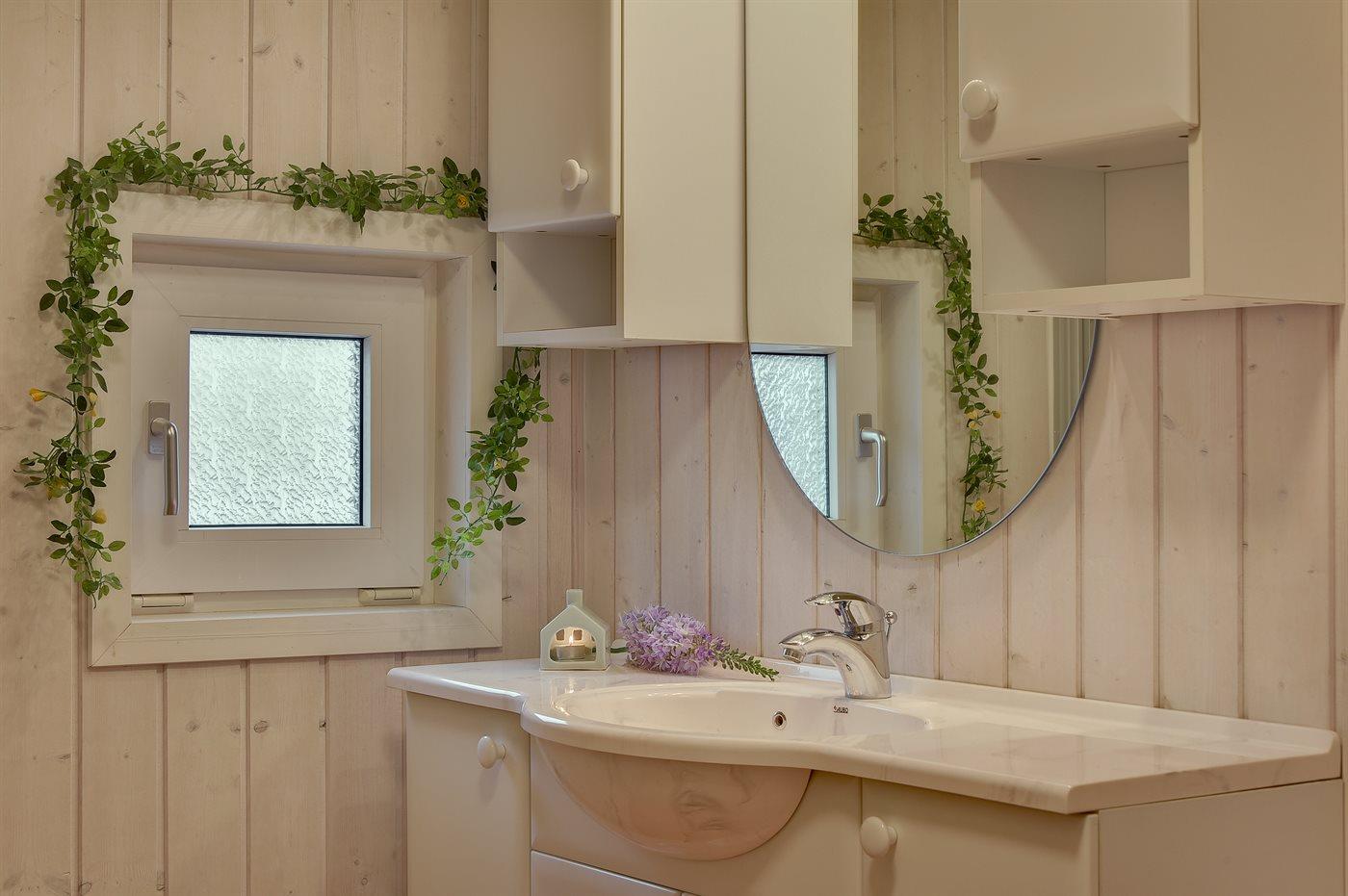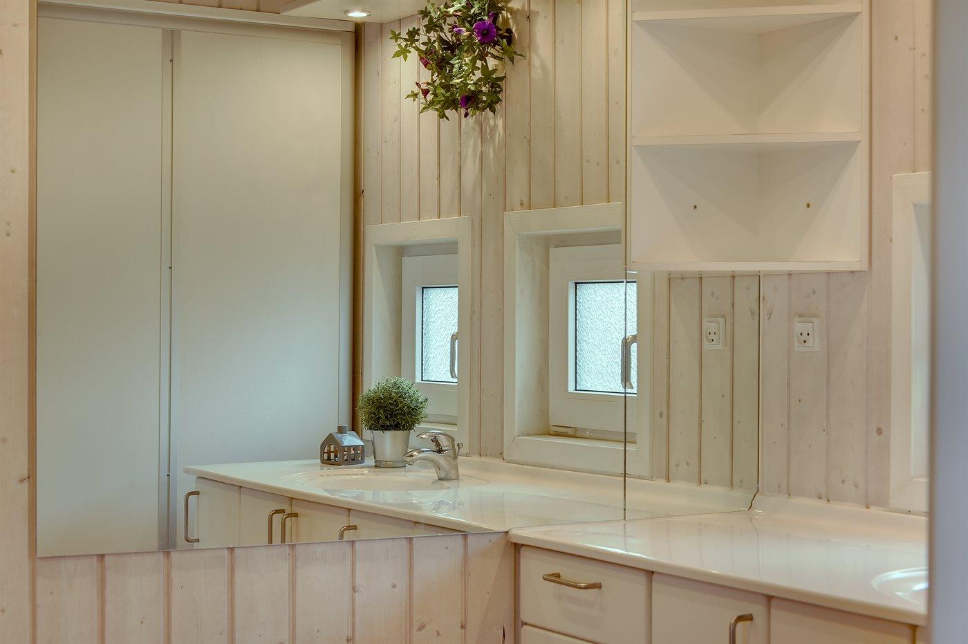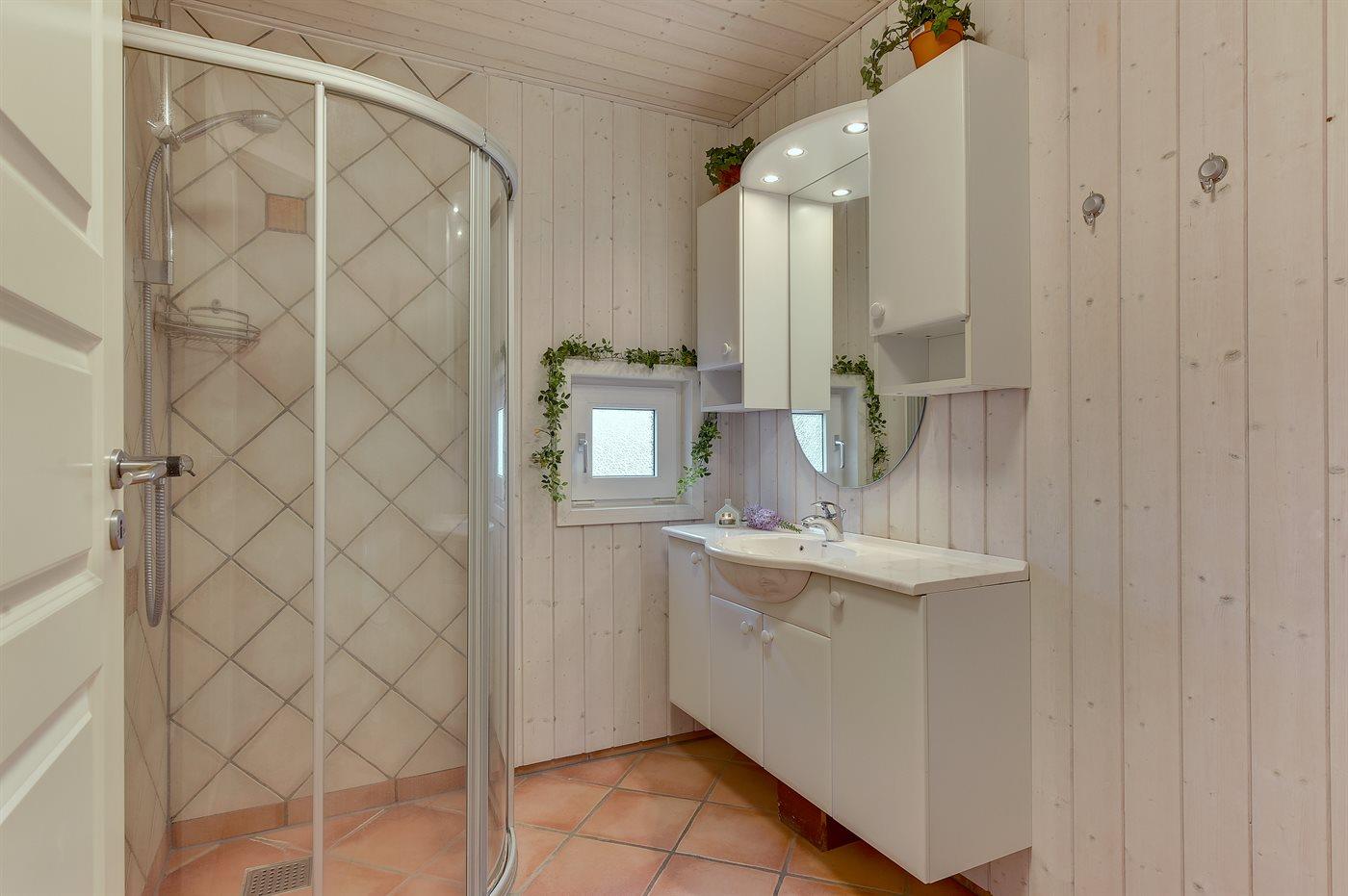 Der er 2 badeværelser med bruseniche og 2 toiletter. Der er gulvvarme på 2 badeværelser. Dampkabine. I saunaen er der mulighed for afslapning.