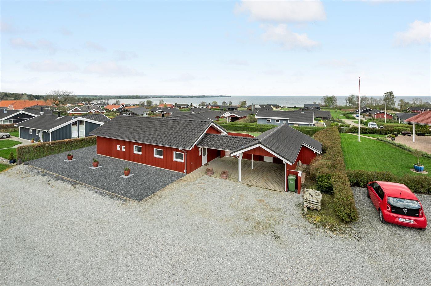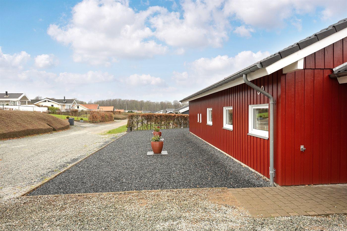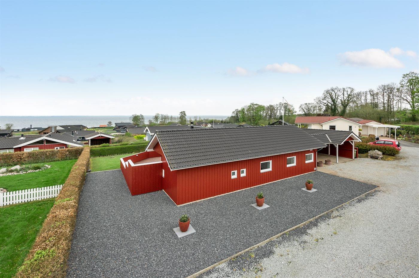 Ferieboligen er beliggende på en 950 m² stor havegrund. Der er 200 m til havet. Nærmeste forretning er beliggende i en afstand af 500 m. Til ferieboligen hører 50 m² terrasseareal. Desuden er der 15 m² overdækket terrasse. Der er carport til rådighed. Der er indrettet ekstra vask i carporten til bl.a. rensning af fisk m.m.