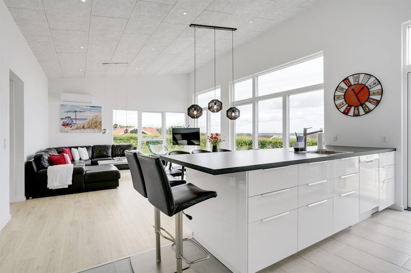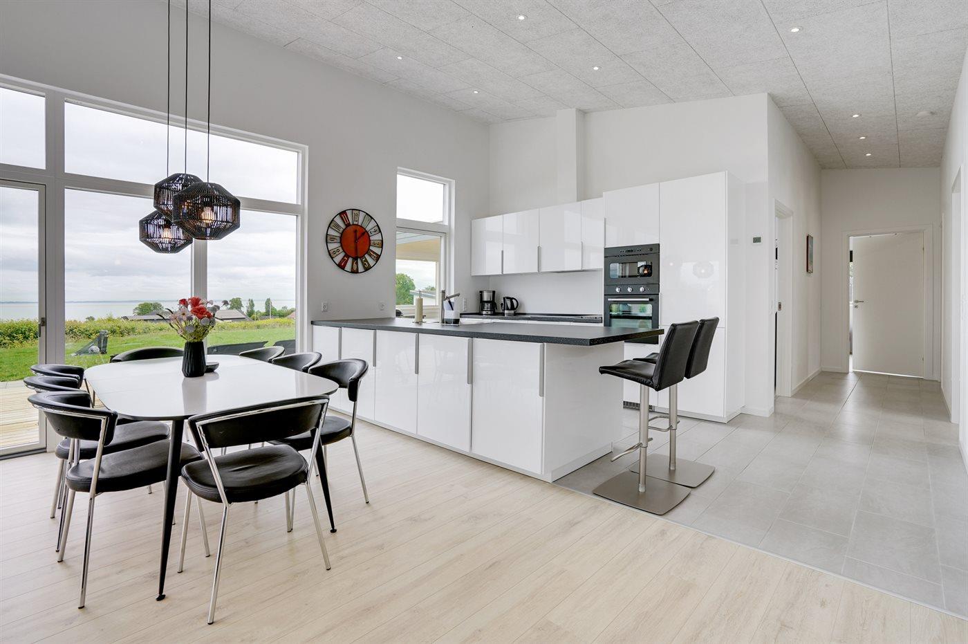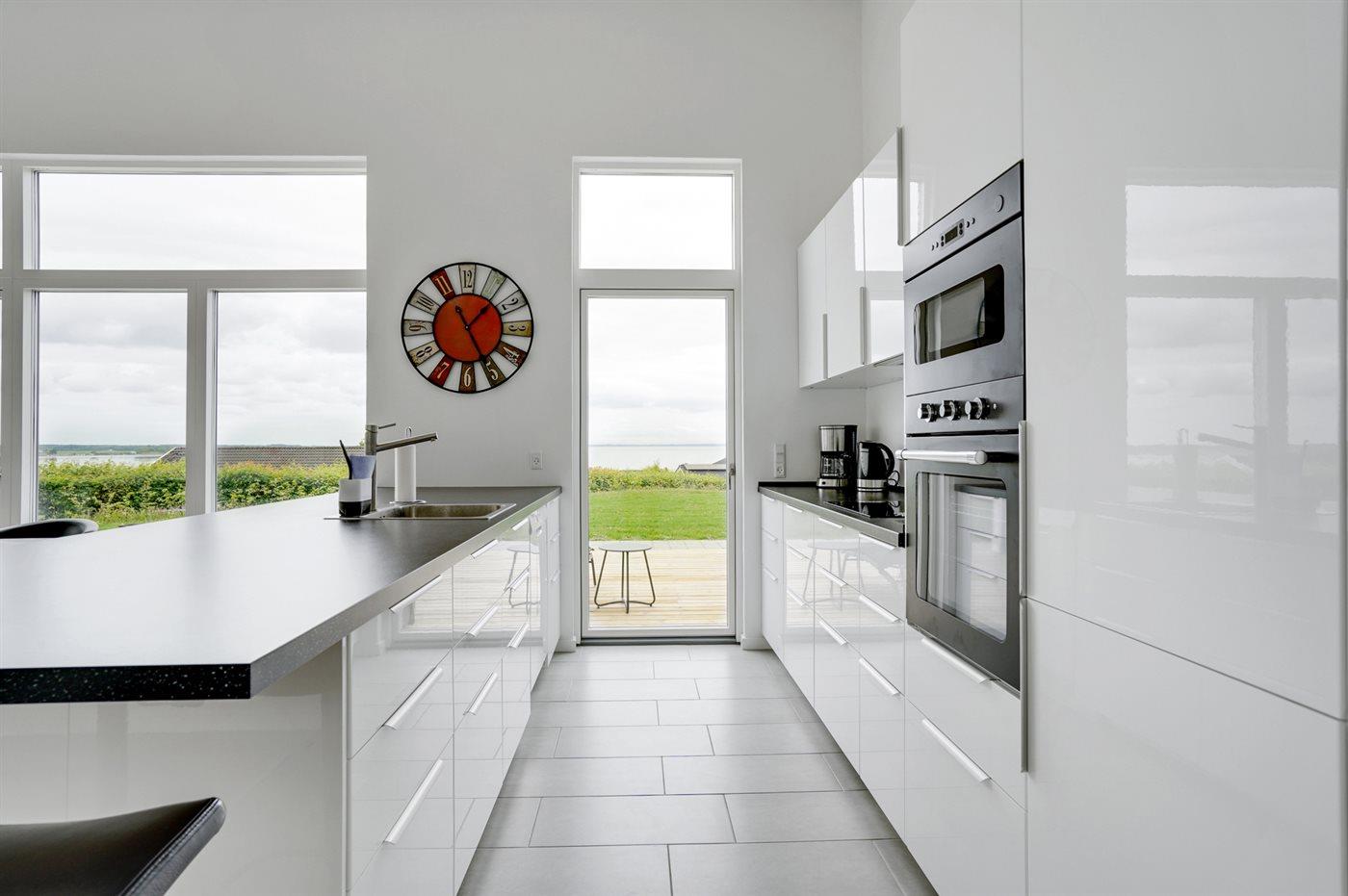 Køkkenet er udstyret med 1 køleskab. Der er 4 induktionskogeplader, varmluftovn, mikrobølgeovn samt opvaskemaskine.