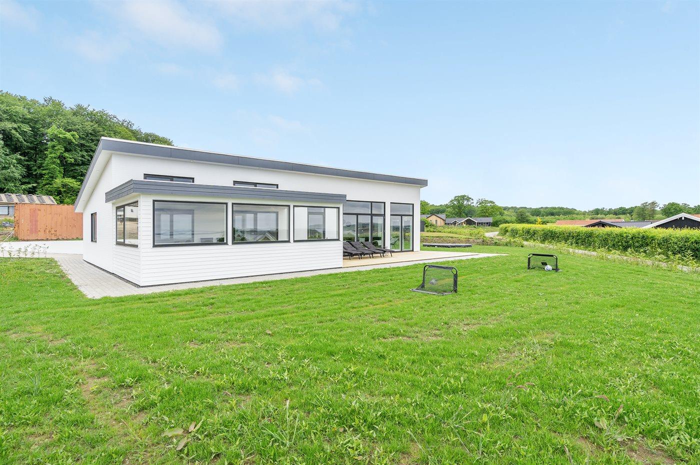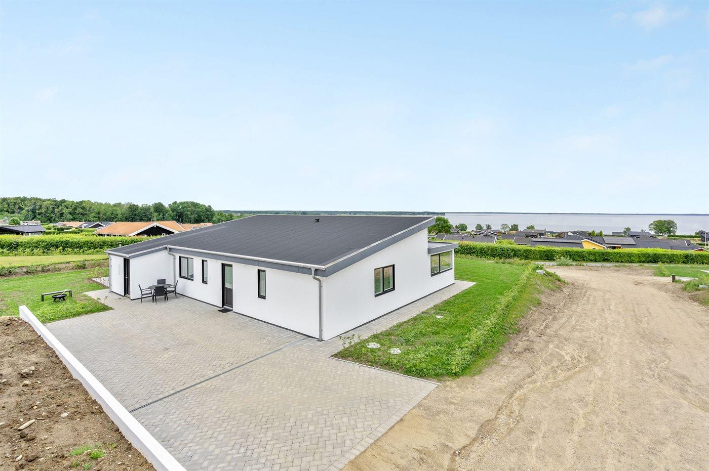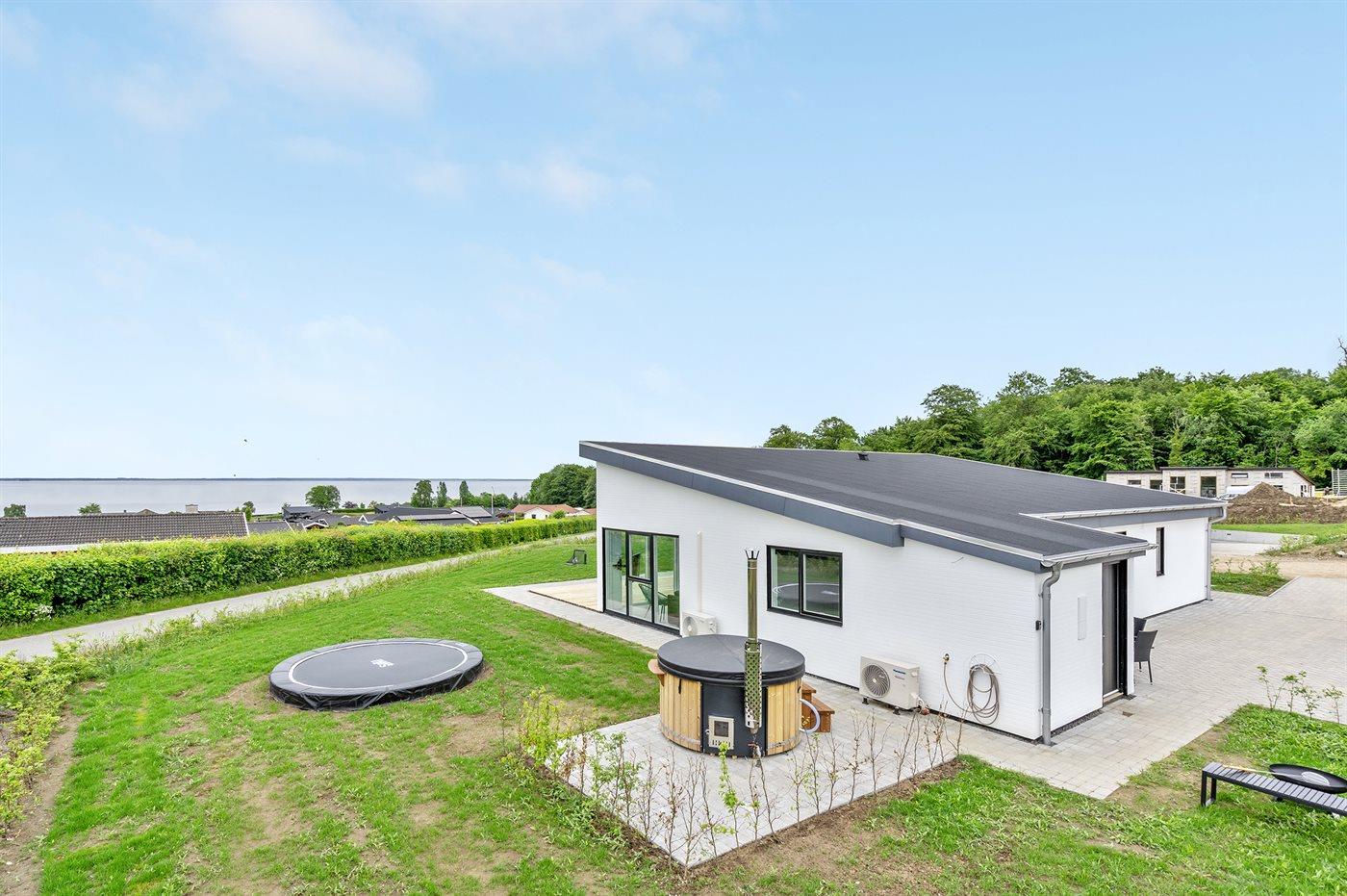 Dette er et nyt hus, bygget i 2022 og beliggende i Grønninghoved med panoramaudsigt over vandet.