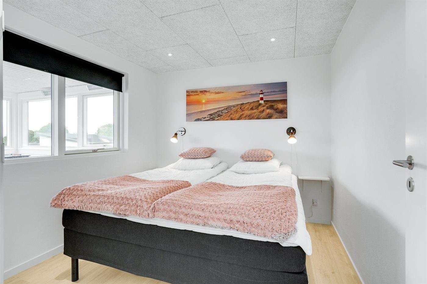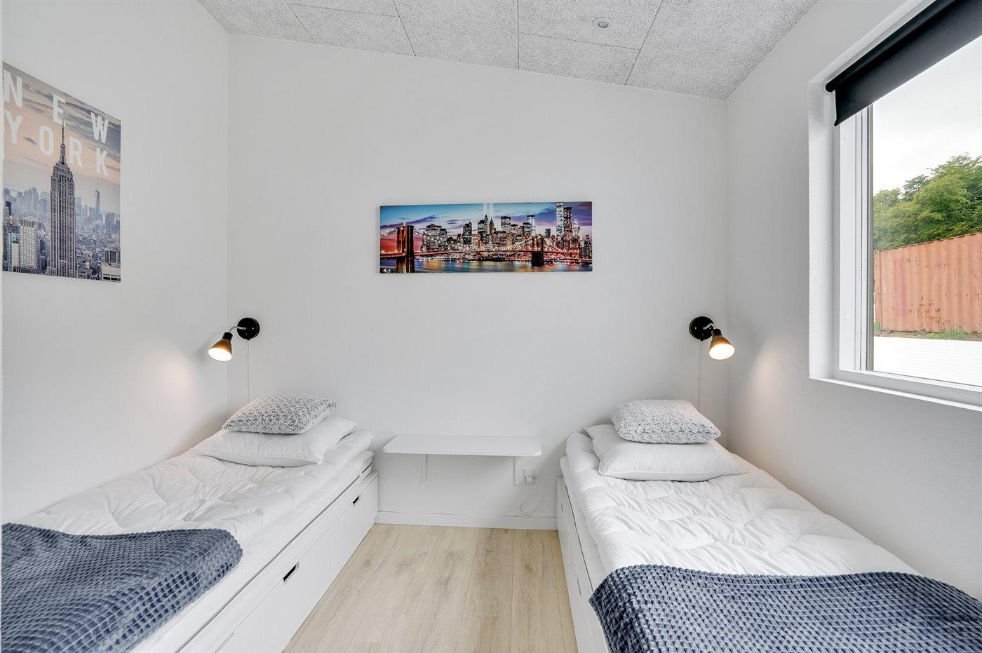 Der er i alt 4 soveværelser. Sovepladserne fordeler sig på: 4 sovepladser i dobbeltsenge. 4 sovepladser i enkeltsenge. 2 sovepladser på madrasser. 2 af disse sovepladser befinder sig på husets hems. Derudover er der 1 stk. barneseng.
