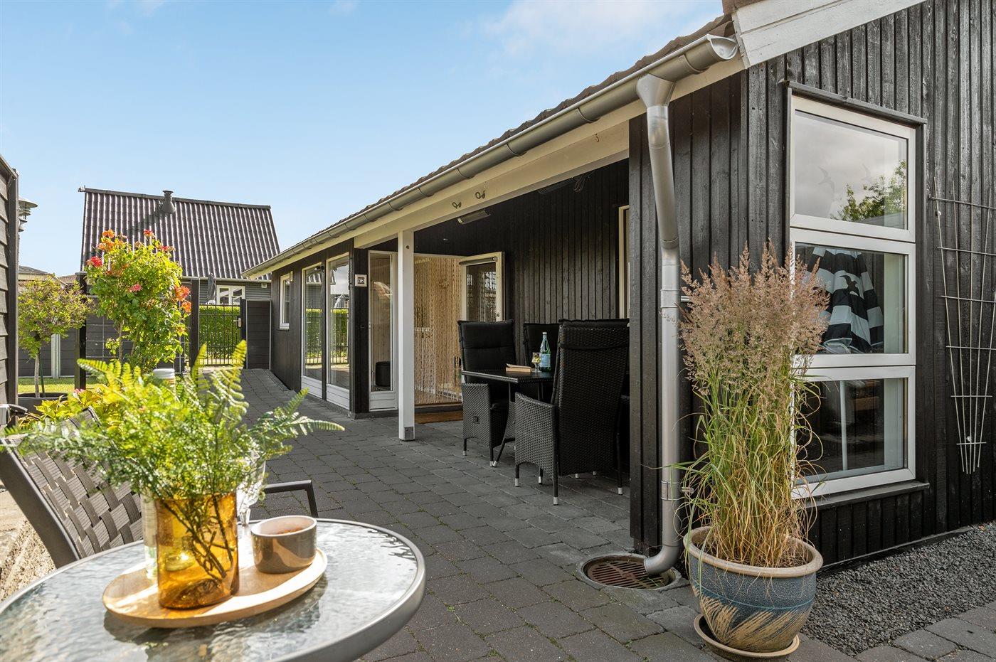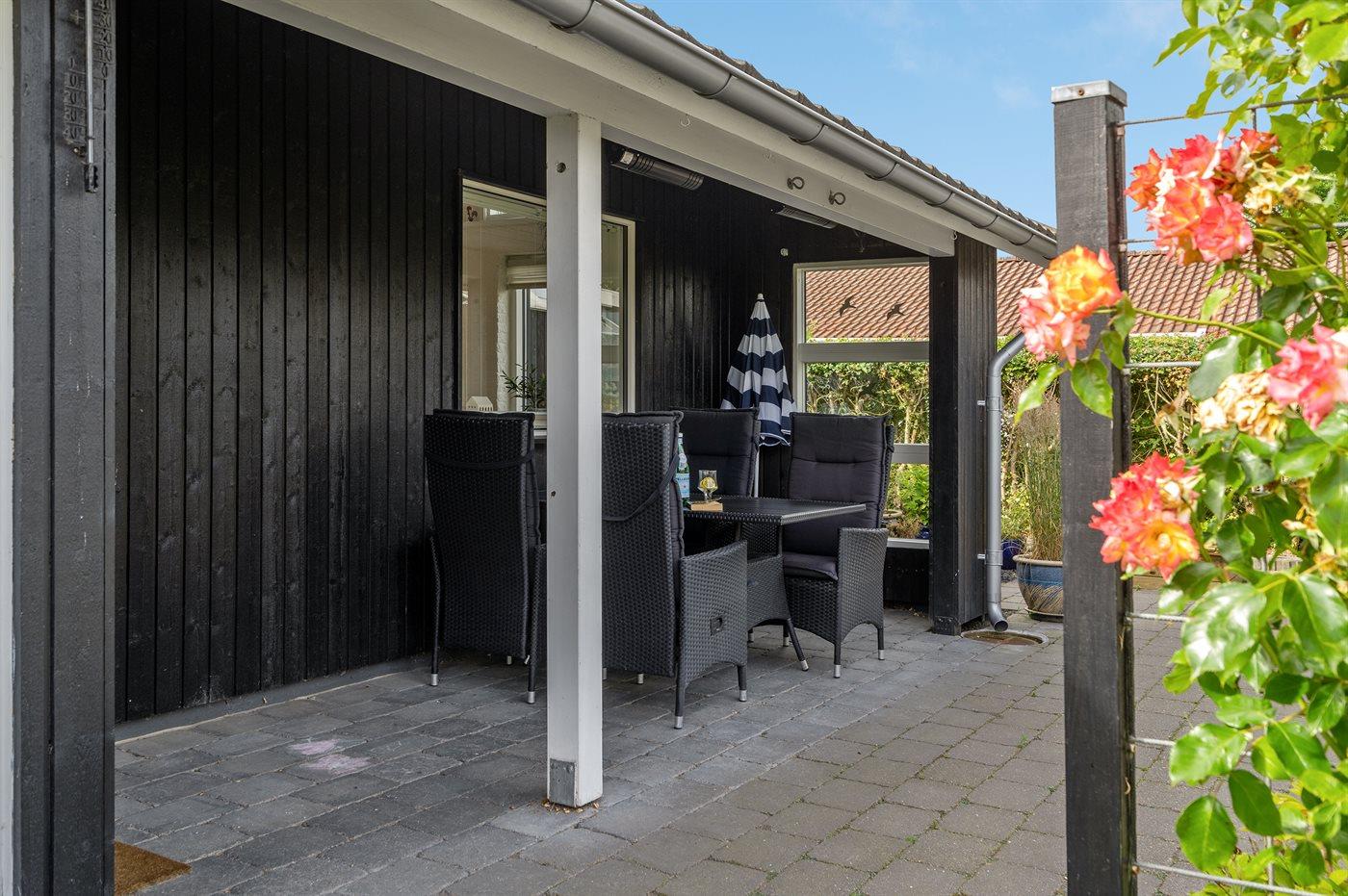 Ferieboligen er beliggende på en 321 m² stor havegrund. Grunden er indhegnet. Der er 75 m til havet. Nærmeste forretning er beliggende i en afstand af 4000 m. Der er en golfbane i en afstand af 12000 m.Desuden er der 12 m² overdækket terrasse samt 40 m² lukket terrasse. Gynge. Sandkasse. Grill til rådighed. Der er carport til rådighed. Parkering ved ferieboligen.