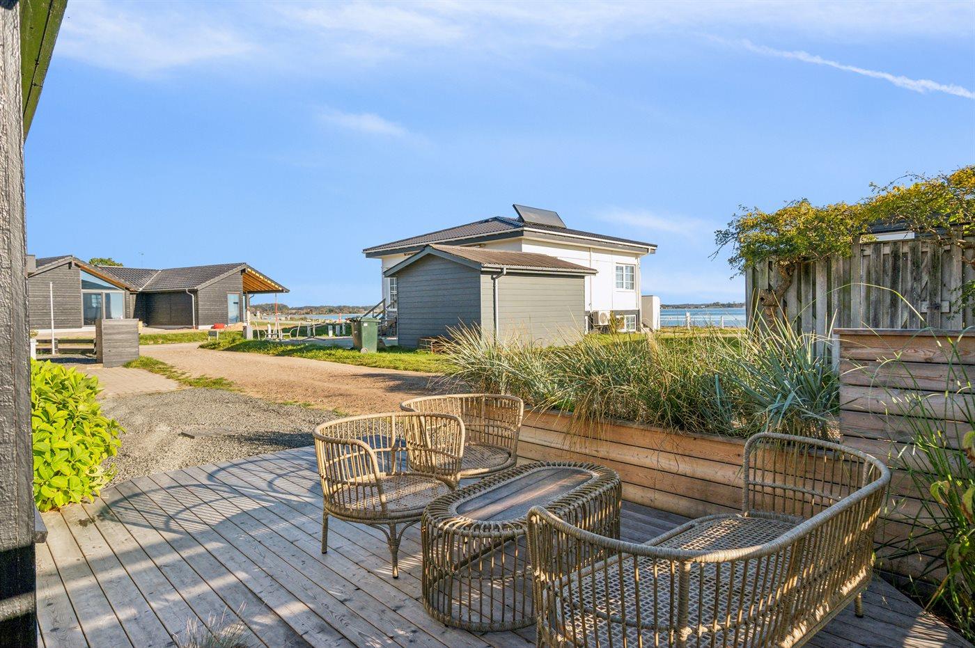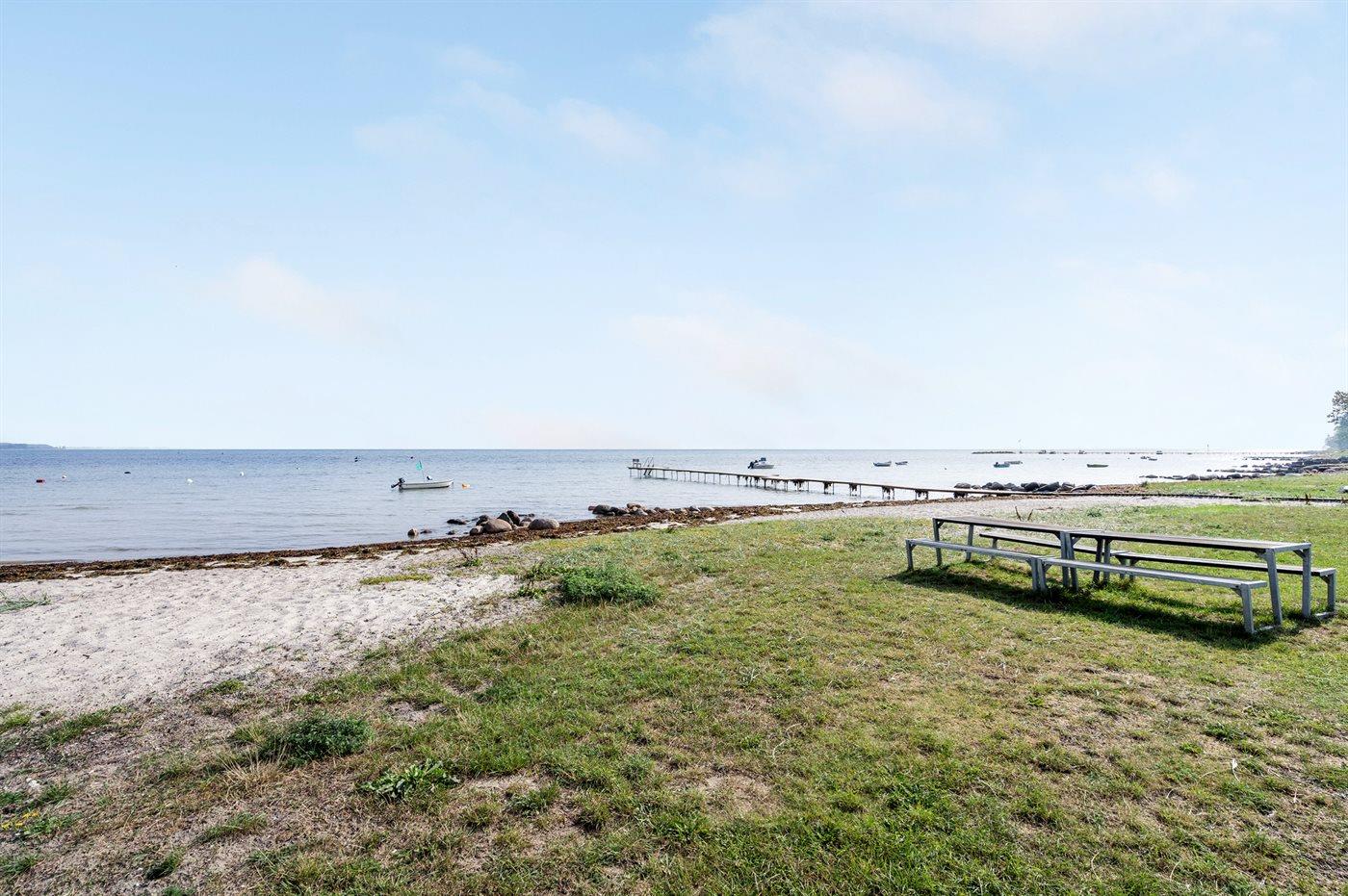 Ferieboligen er beliggende på en 300 m² stor havegrund. Der er 50 m til havet. Der er en badebro i nærheden. Nærmeste forretning er beliggende i en afstand af 200 m. Der er en golfbane i en afstand af 10000 m. Til ferieboligen hører åbent terrasseareal. Desuden er der overdækket terrasse. Grill til rådighed. Parkering ved ferieboligen.