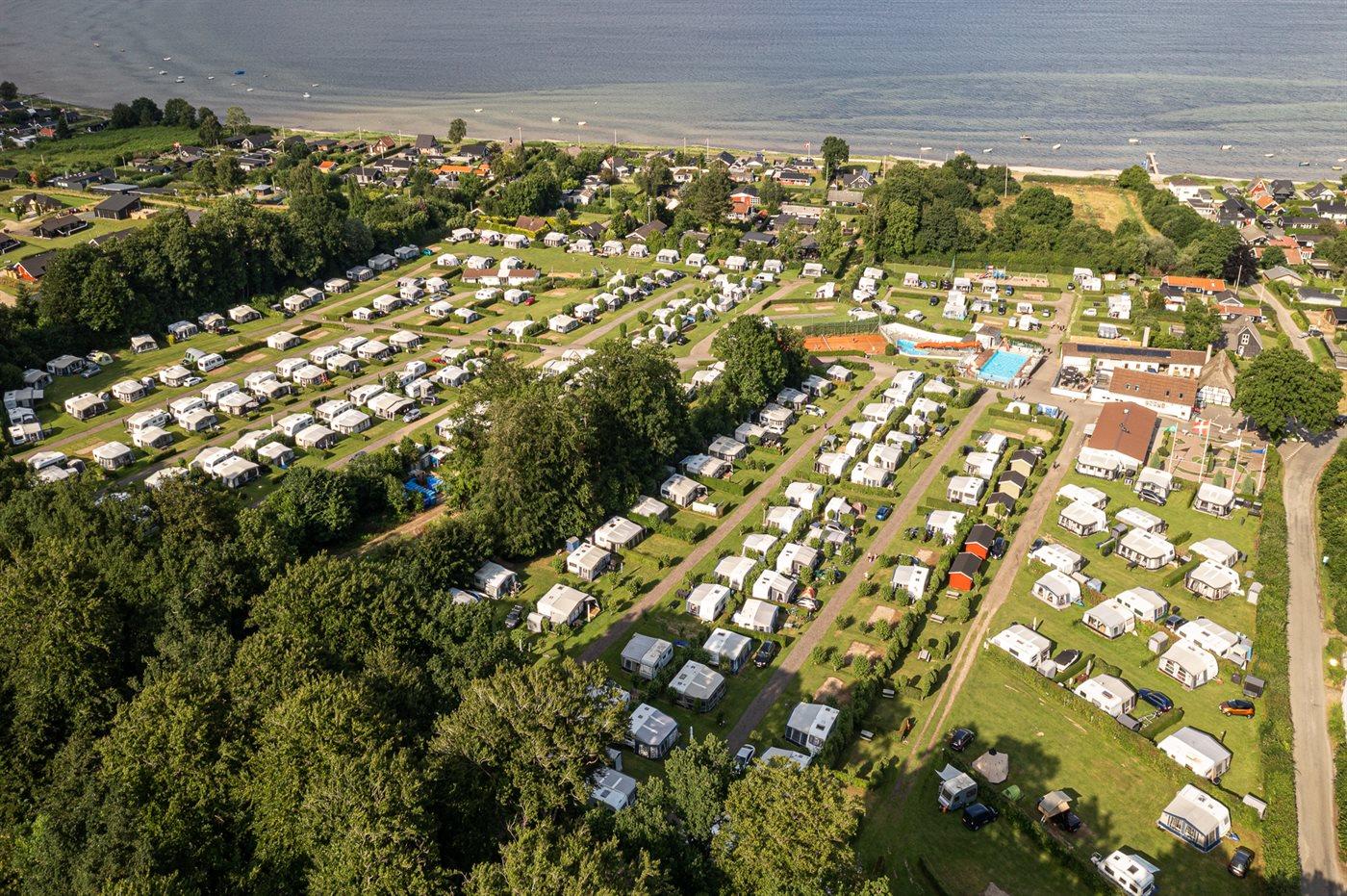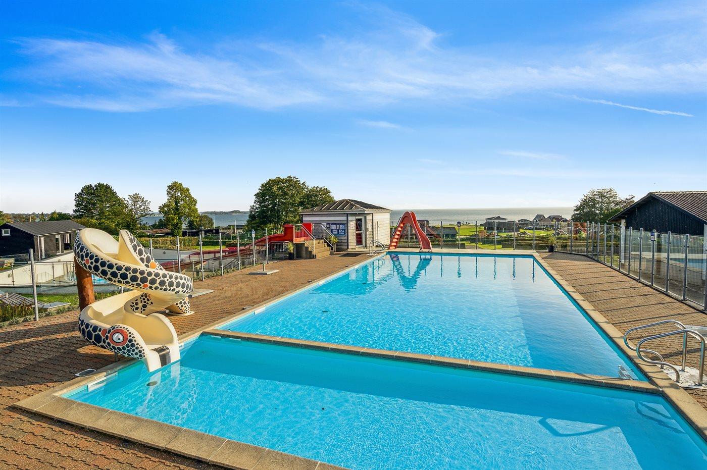 Charmerende sommerhus med havudsigt, tæt på strand, spa og aktiviteter på firestjernet campingplads.