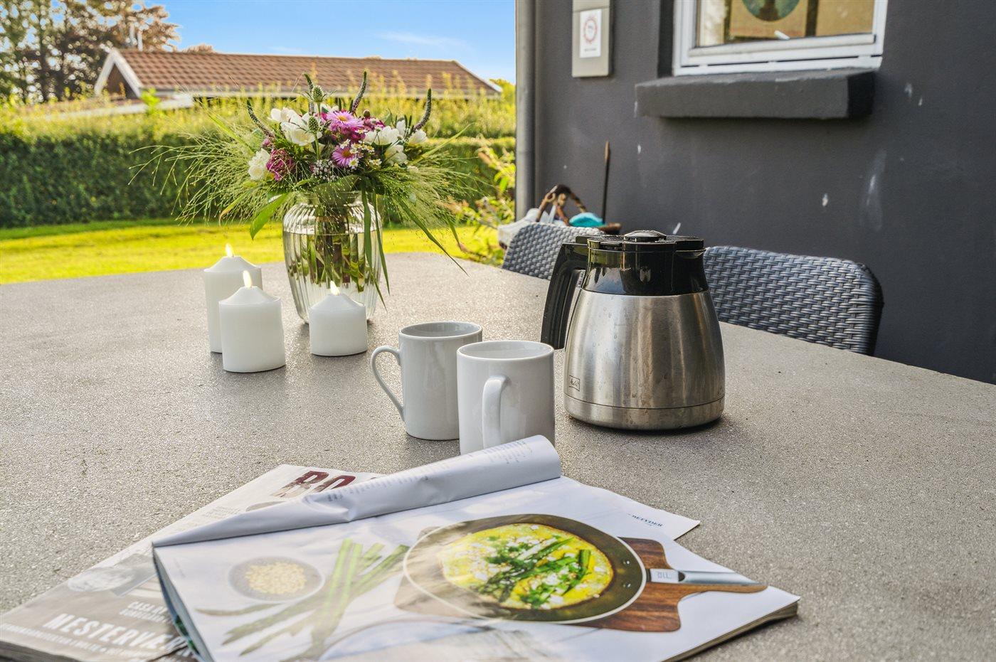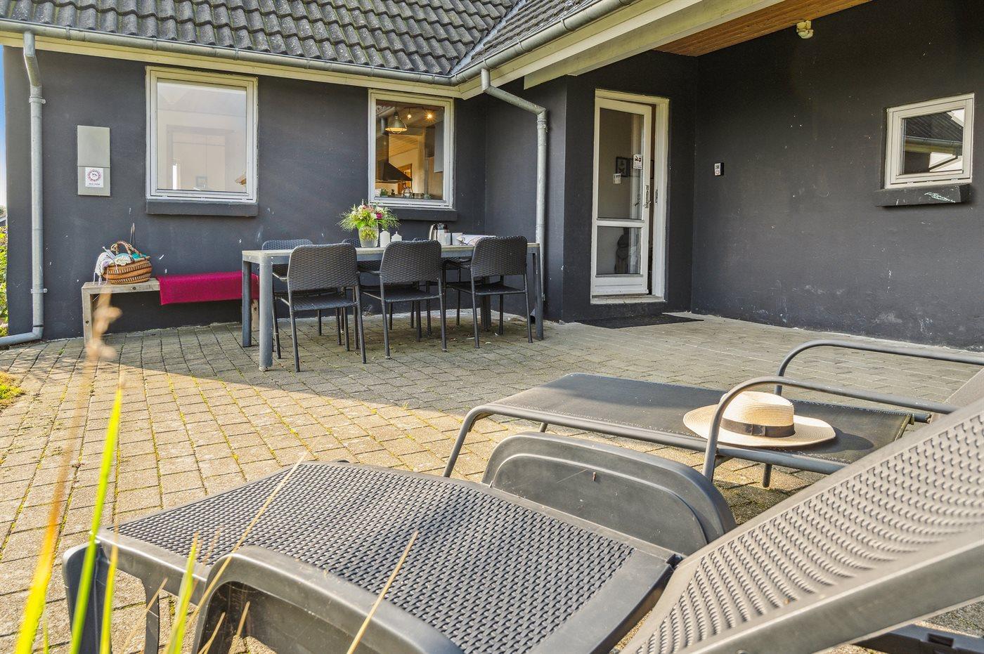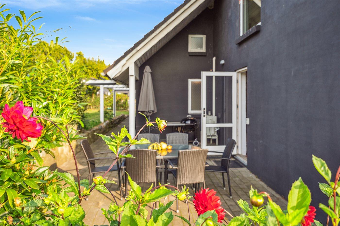 Ferieboligen er beliggende på en 1000 m² stor havegrund. Der er 200 m til havet. Der er en badebro i nærheden. Nærmeste forretning er beliggende i en afstand af 50 m. Til ferieboligen hører åbent terrasseareal. Desuden er der overdækket terrasse. Udgang til altan. Grill til rådighed. Parkering ved ferieboligen.