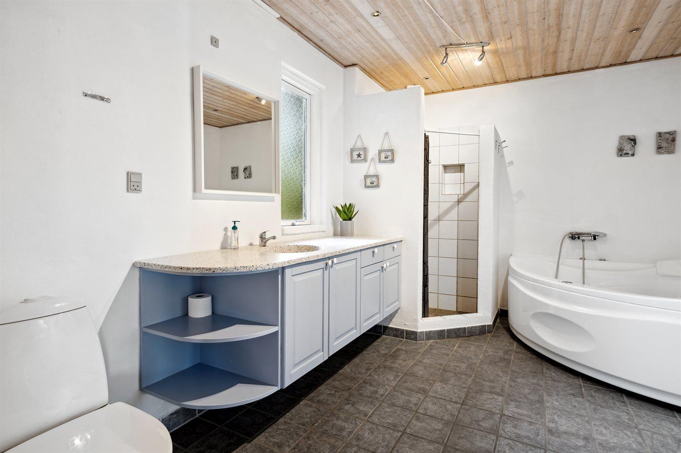 Der er 1 badeværelse med bruseniche og 2 toiletter.