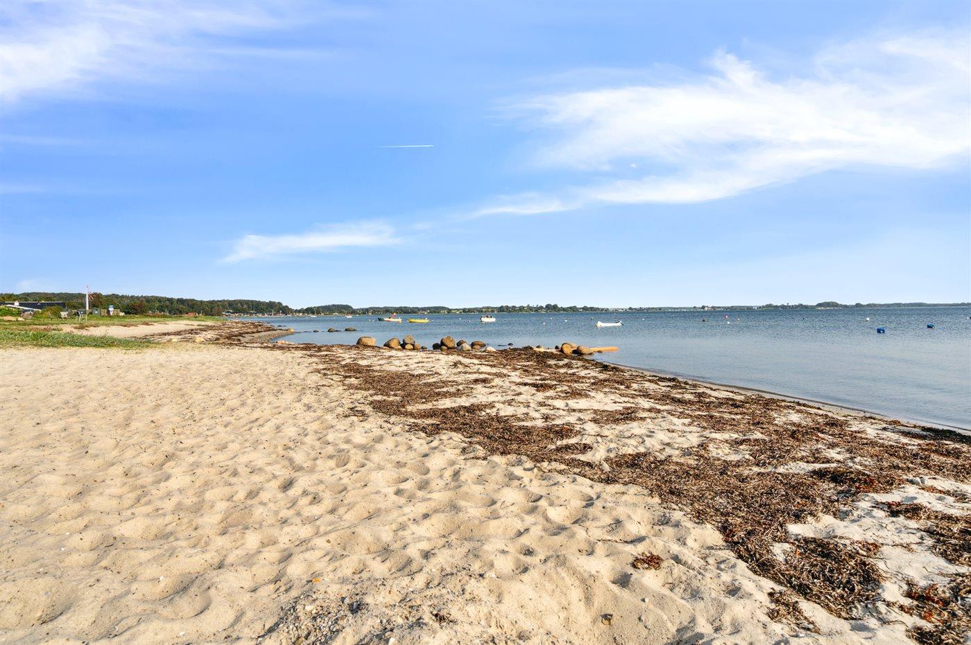 Sommerhuset ligger med udsigt over vandet og kun 200 meter fra super god badestrand.