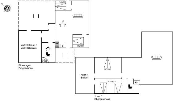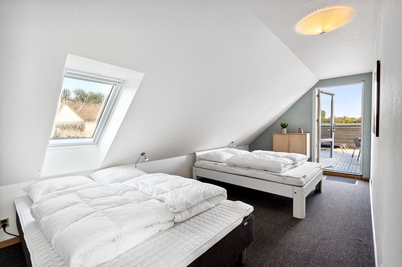 Der er i alt 4 soveværelser. Sovepladserne fordeler sig på: 10 sovepladser i dobbeltsenge.