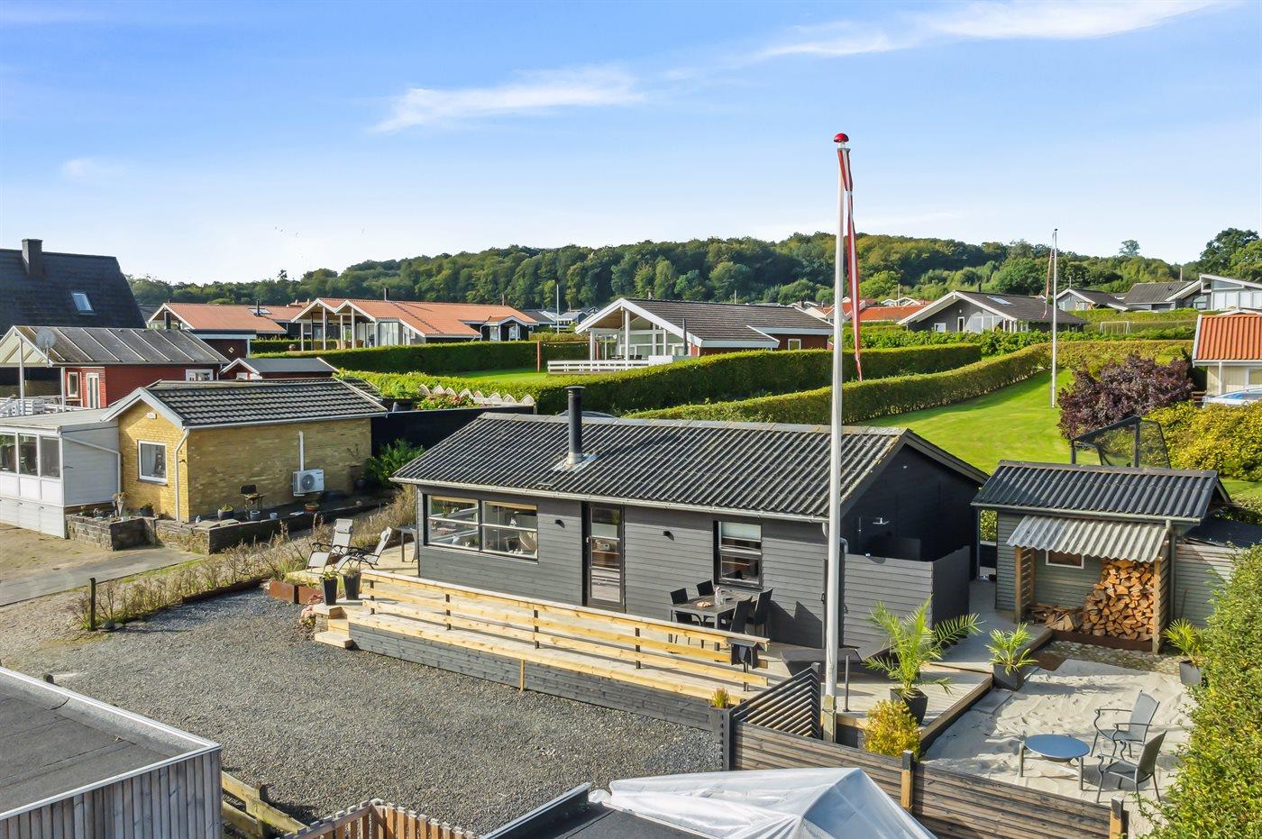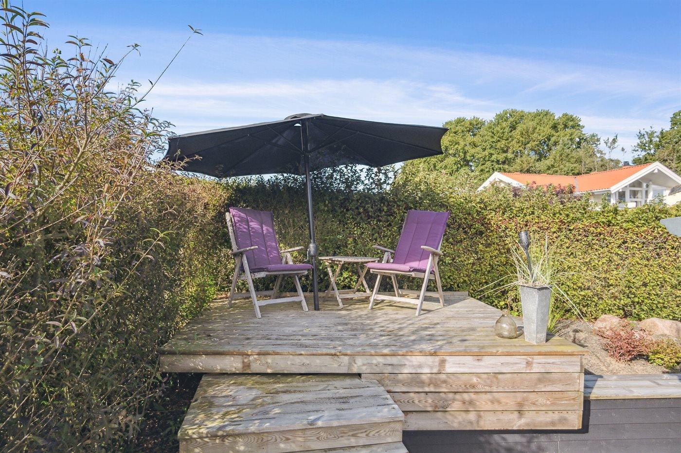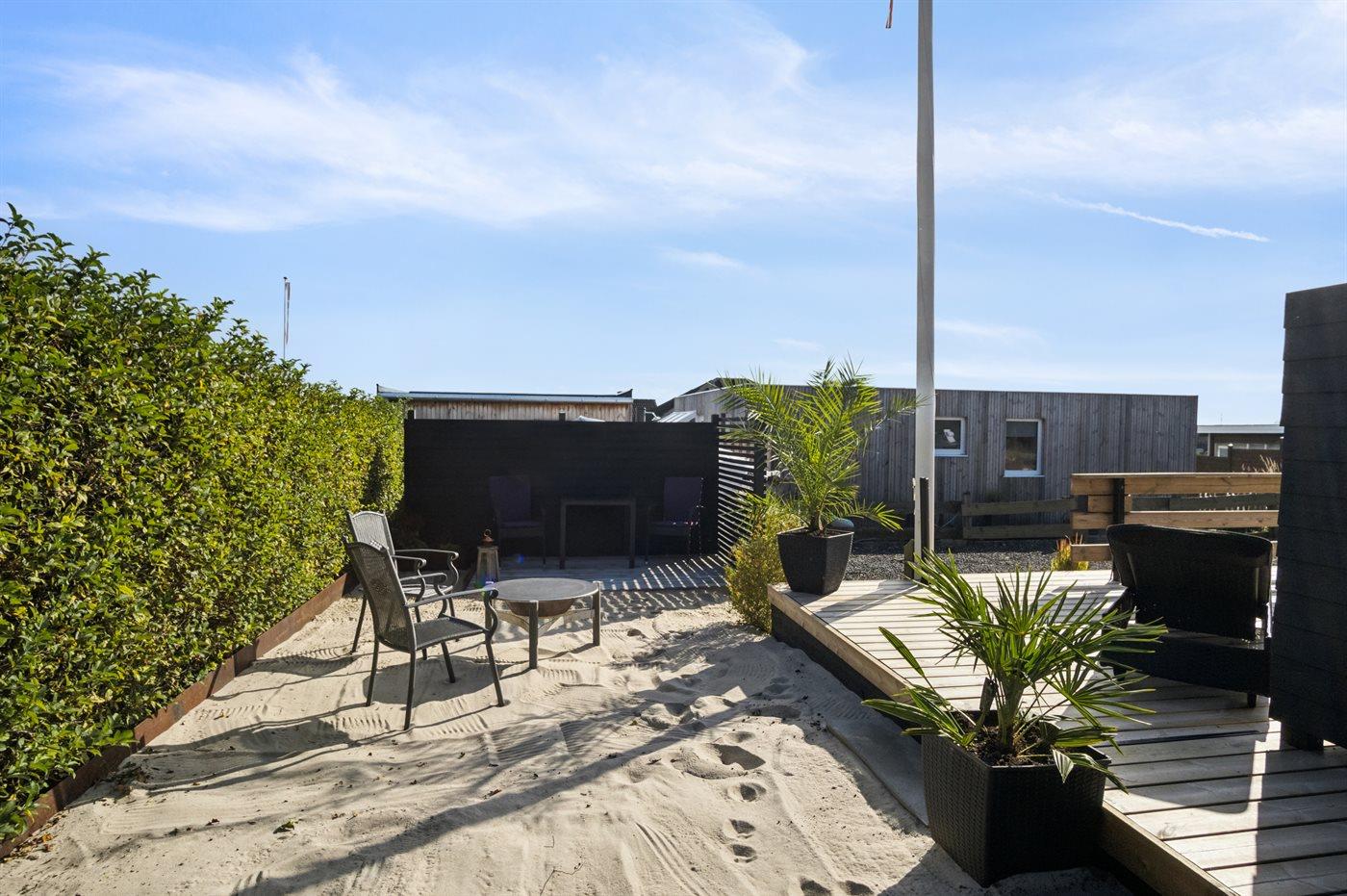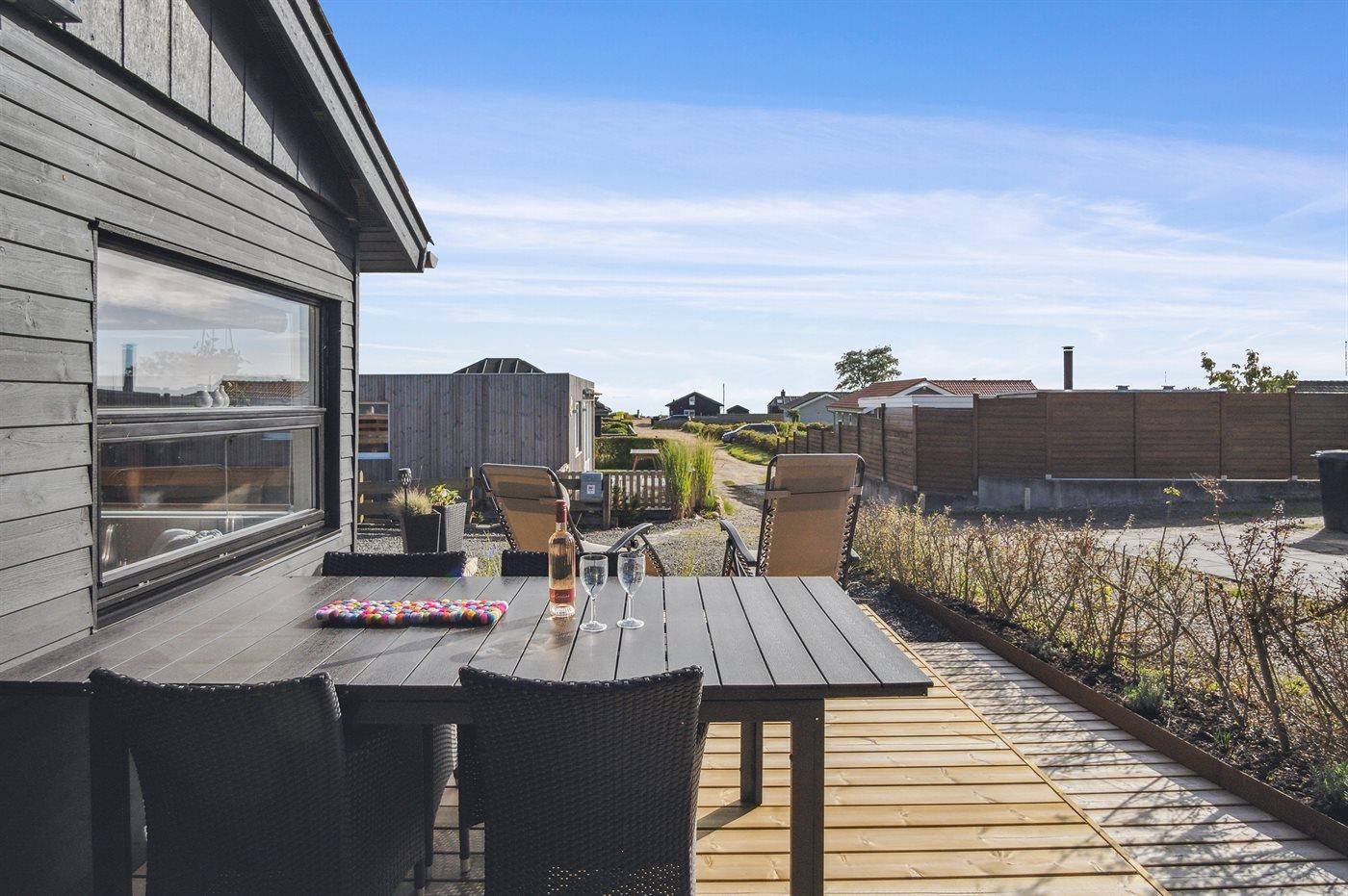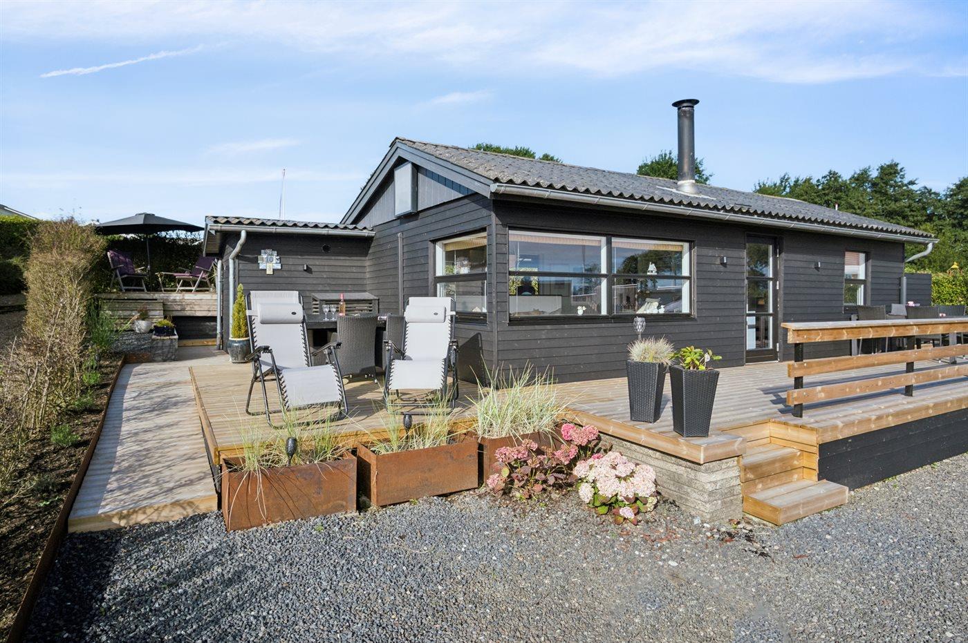 Ferieboligen er beliggende på en 400 m² stor havegrund. Der er 100 m til havet. Nærmeste forretning er beliggende i en afstand af 4000 m. Til ferieboligen hører åbent terrasseareal. Desuden er der overdækket terrasse. Sandkasse. Bålsted. Udendørs bruser. Grill til rådighed. Der er installeret stik til opladning af elbil. Type 2 stik. Med 11 kW ladeeffekt. Parkering ved ferieboligen.