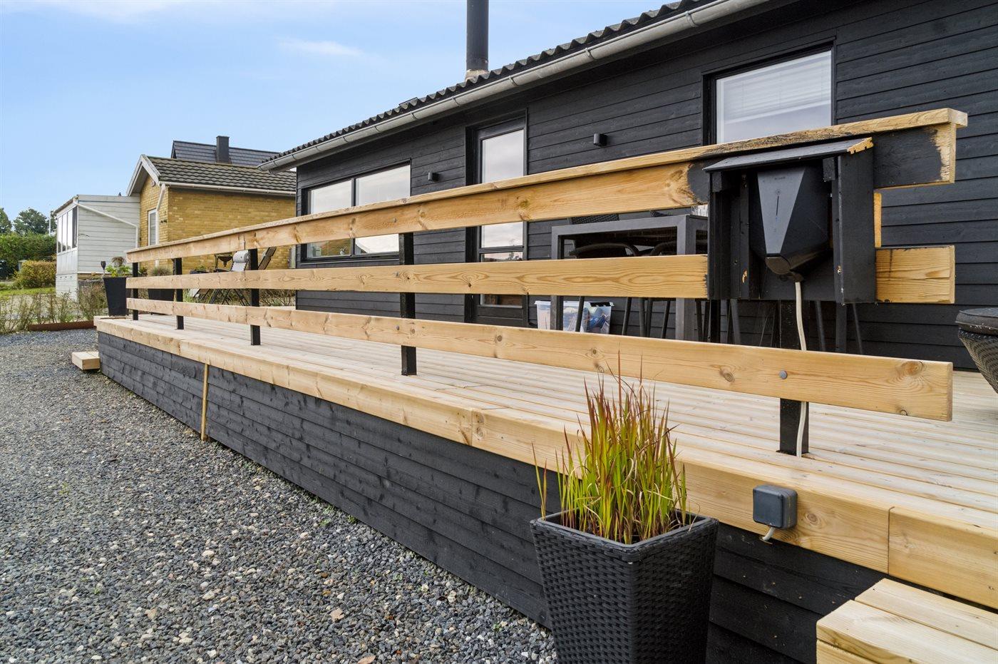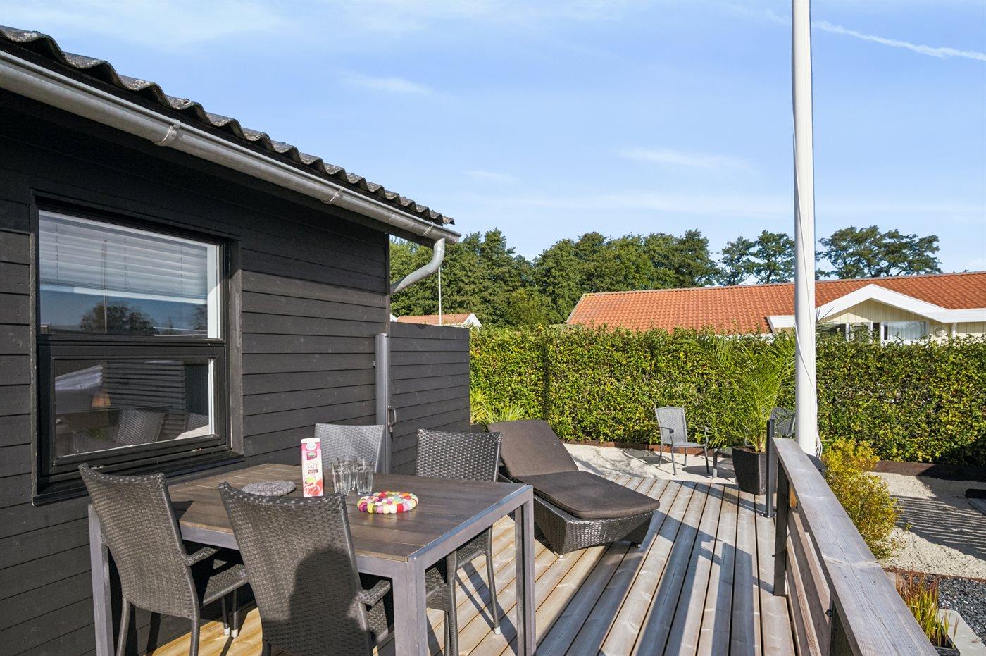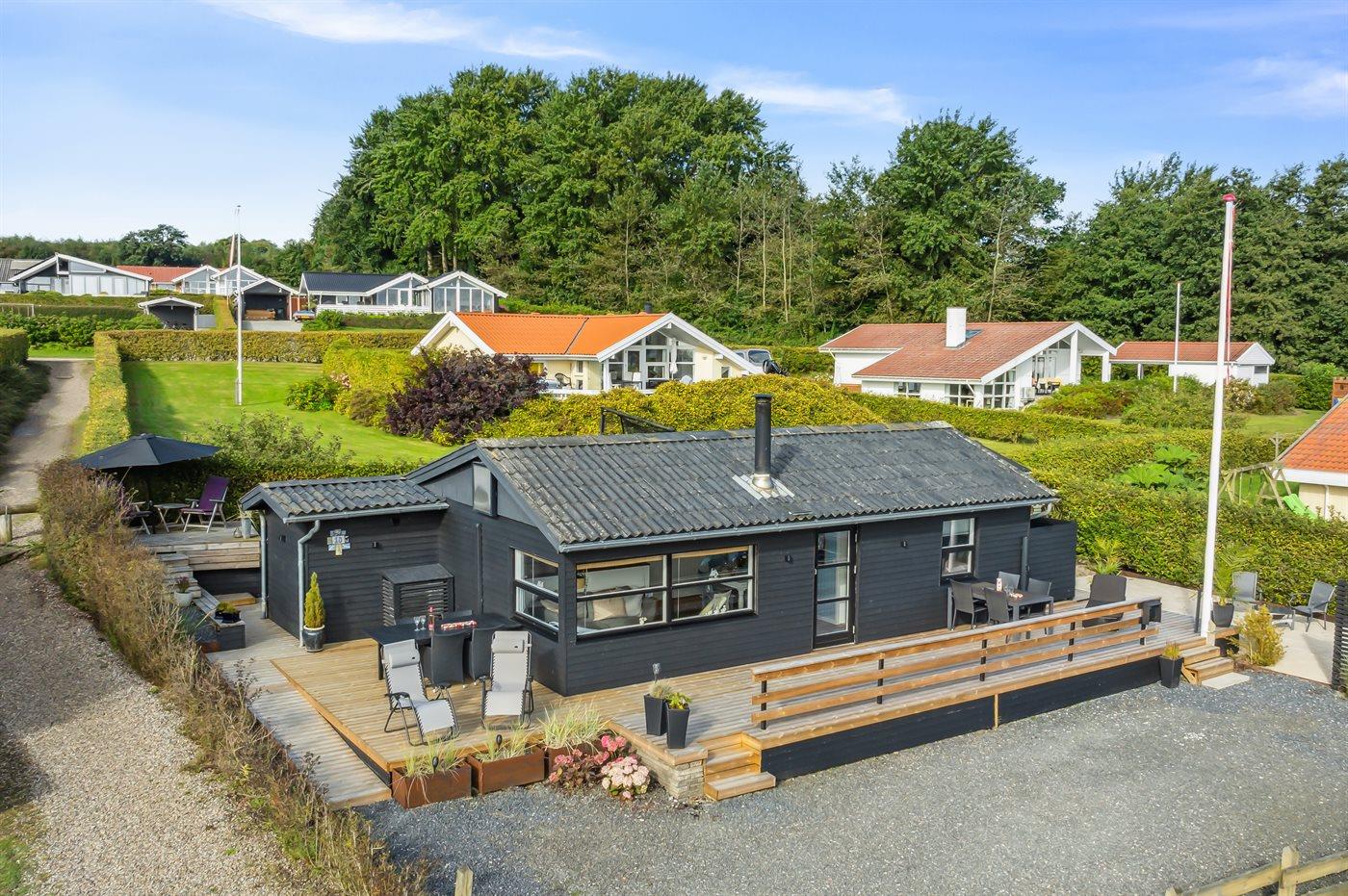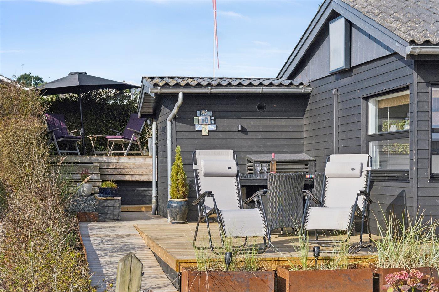 Ferieboligen er beliggende på en 400 m² stor havegrund. Der er 100 m til havet. Nærmeste forretning er beliggende i en afstand af 4000 m. Til ferieboligen hører åbent terrasseareal. Desuden er der overdækket terrasse. Sandkasse. Bålsted. Udendørs bruser. Grill til rådighed. Der er installeret stik til opladning af elbil. Type 2 stik. Med 11 kW ladeeffekt. Parkering ved ferieboligen.