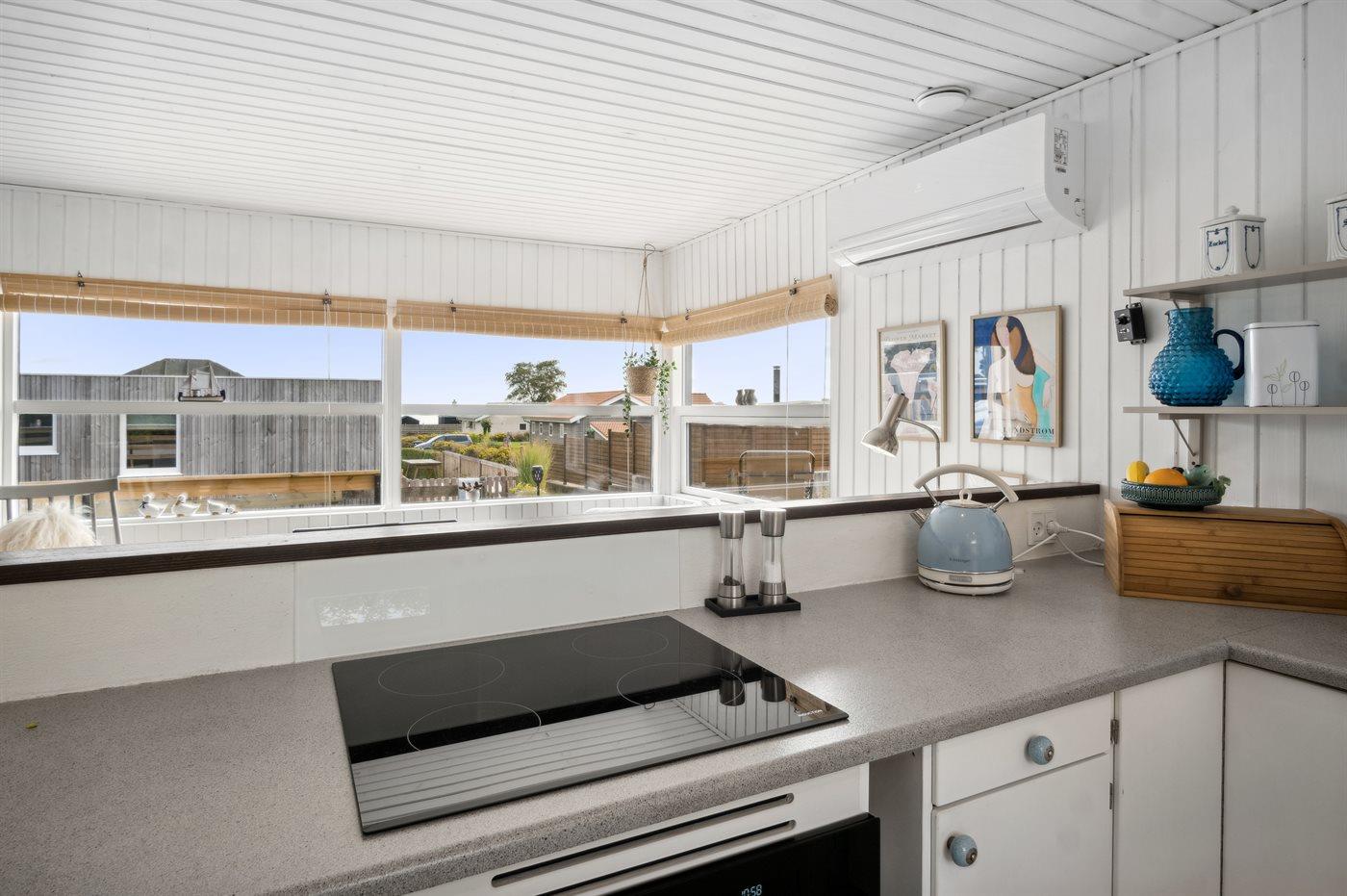 Køkkenet er udstyret med 1 køleskab. Der er 4 keramiske kogeplader, varmluftovn, mikrobølgeovn samt opvaskemaskine.