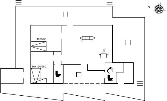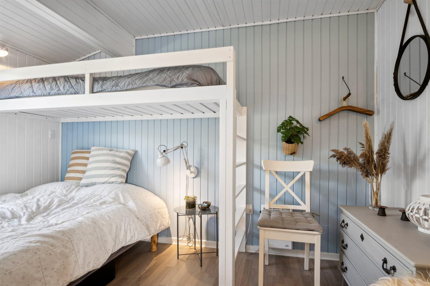 Der er i alt 2 soveværelser. Sovepladserne fordeler sig på: 4 sovepladser i dobbeltsenge.1 soveplads i køjeseng. Derudover er der 1 stk. barneseng.