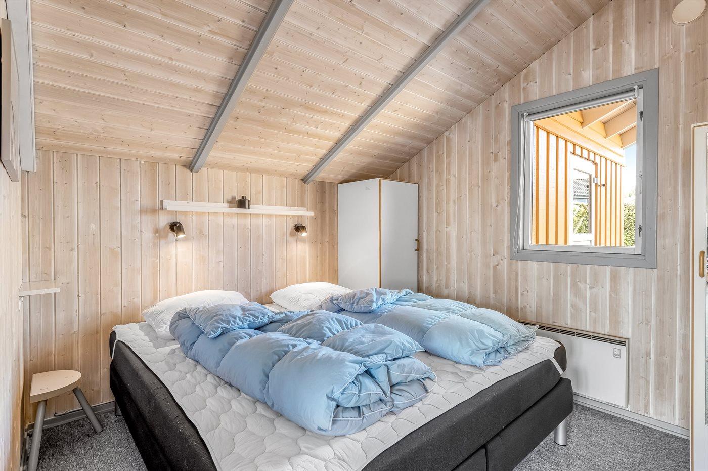 Der er i alt 3 soveværelser. Sovepladserne fordeler sig på: 4 sovepladser i dobbeltsenge. 2 sovepladser i enkeltsenge. Derudover er der 1 stk. barneseng.
