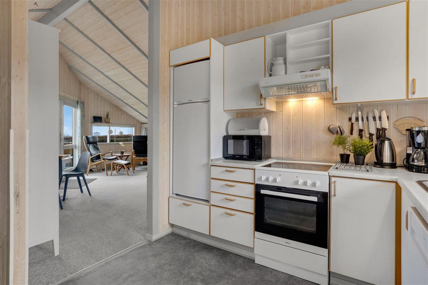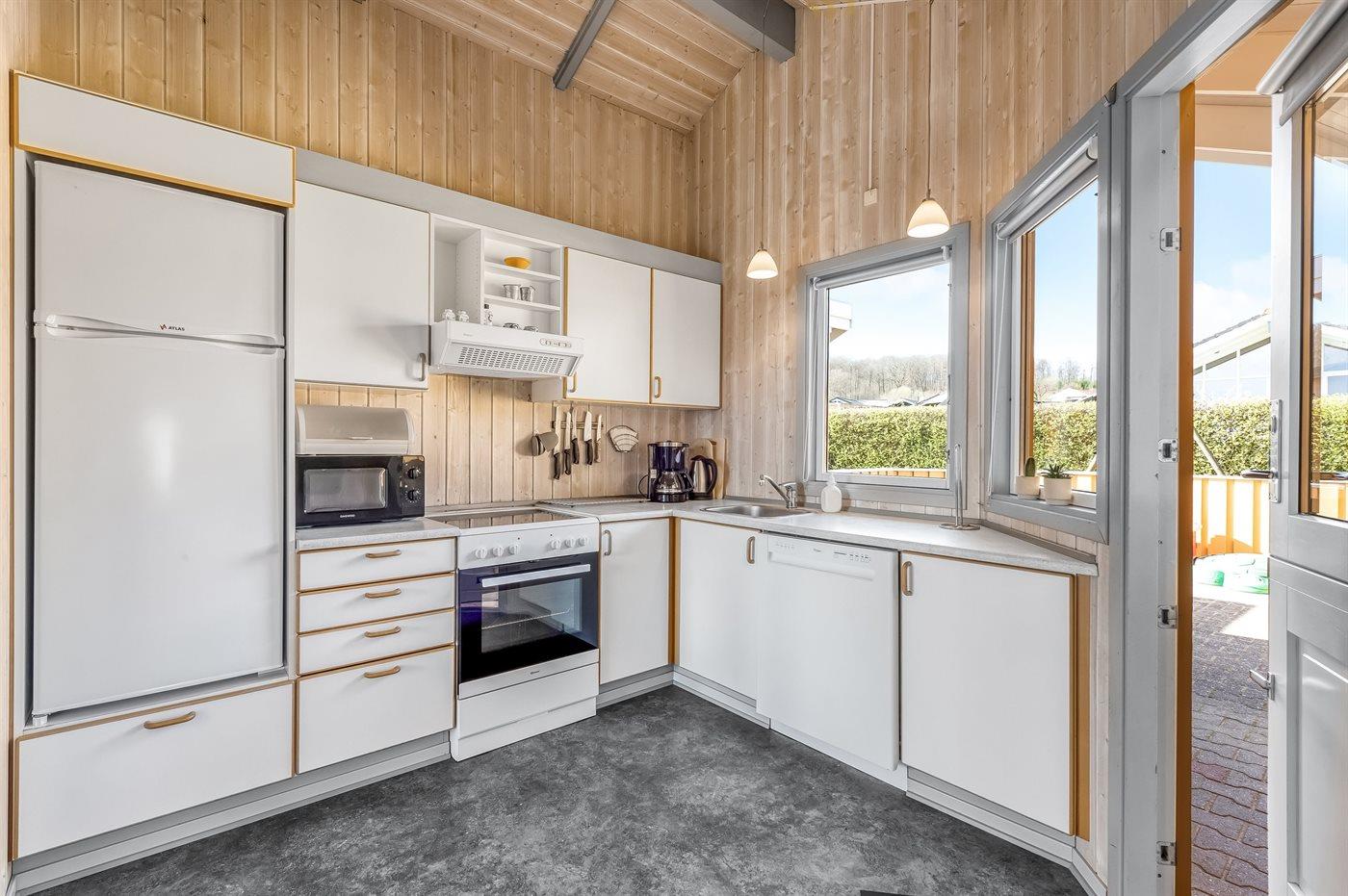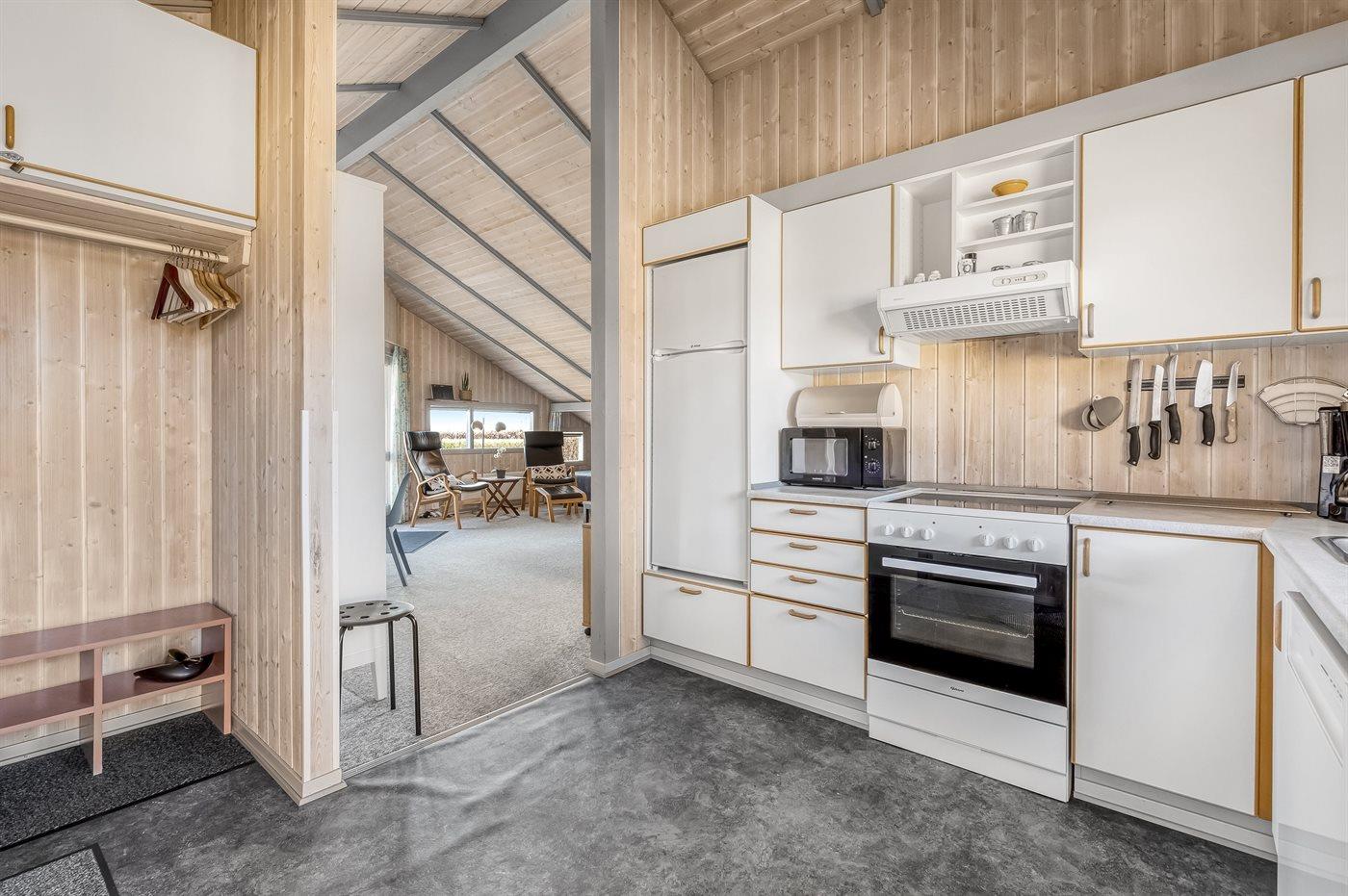 Køkkenet er udstyret med 1 køleskab. Der er 4 keramiske kogeplader, varmluftovn, mikrobølgeovn samt opvaskemaskine.