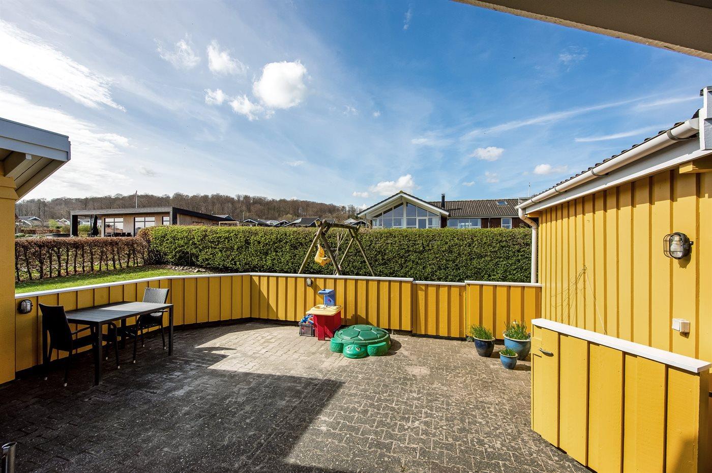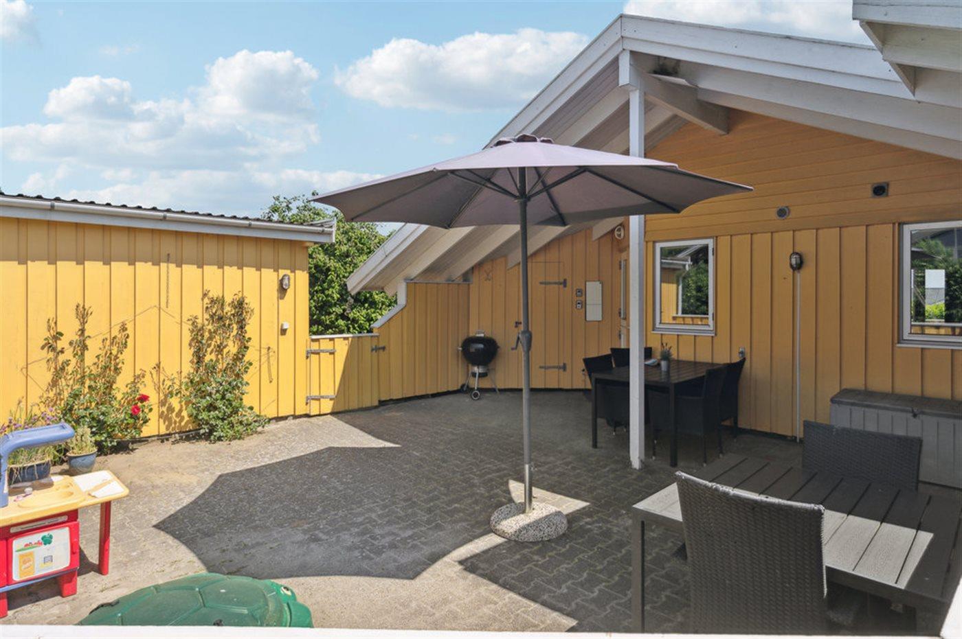 Ferieboligen er beliggende på en 896 m² stor havegrund. Der er 250 m til havet. Nærmeste forretning er beliggende i en afstand af 4000 m. Der er en golfbane i en afstand af 16000 m. Til ferieboligen hører åbent terrasseareal. Desuden er der overdækket terrasse. Der er redskabsrum. Gynge. Sandkasse. Grill til rådighed. Der er carport til rådighed. Parkering ved ferieboligen.