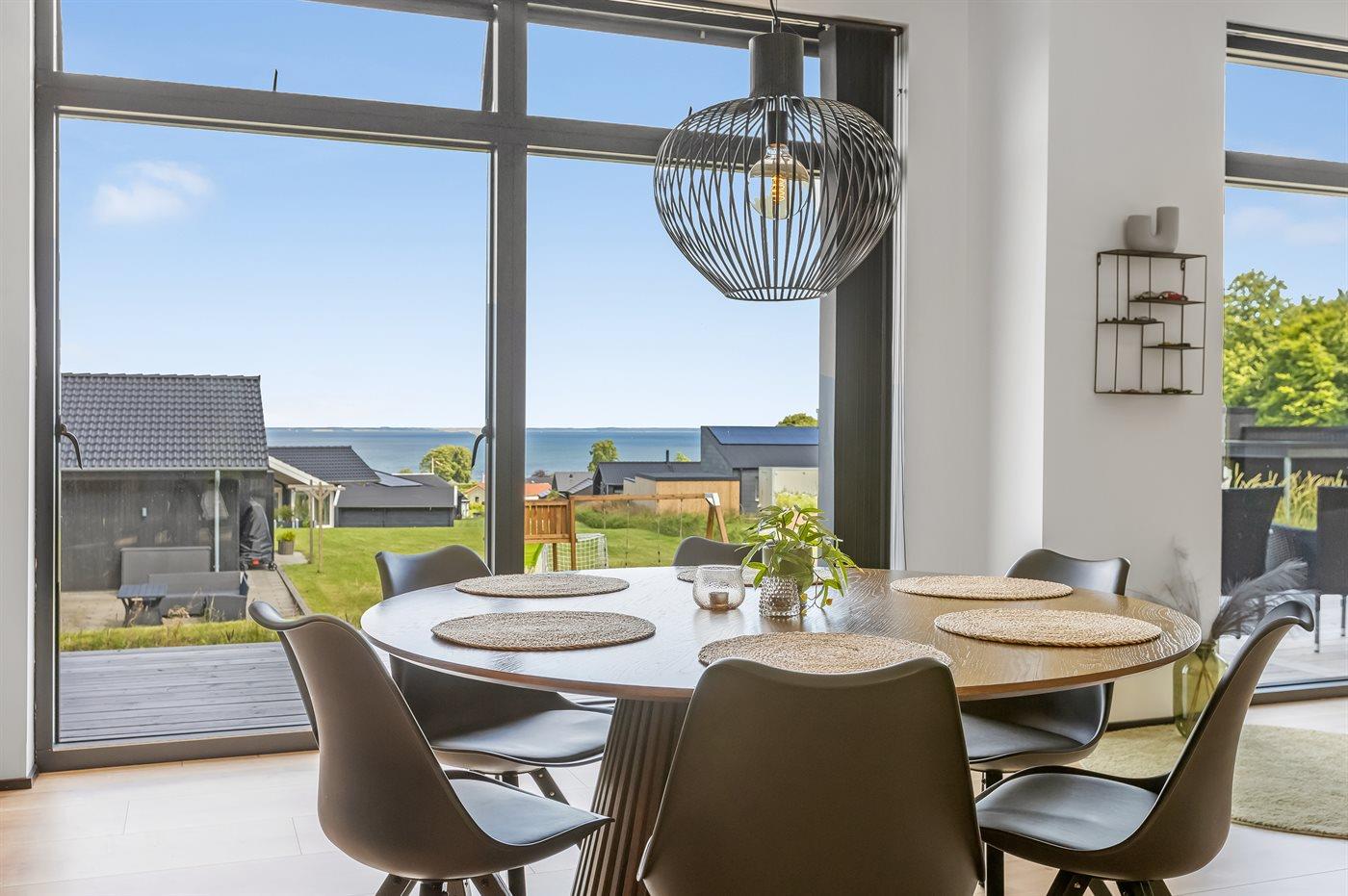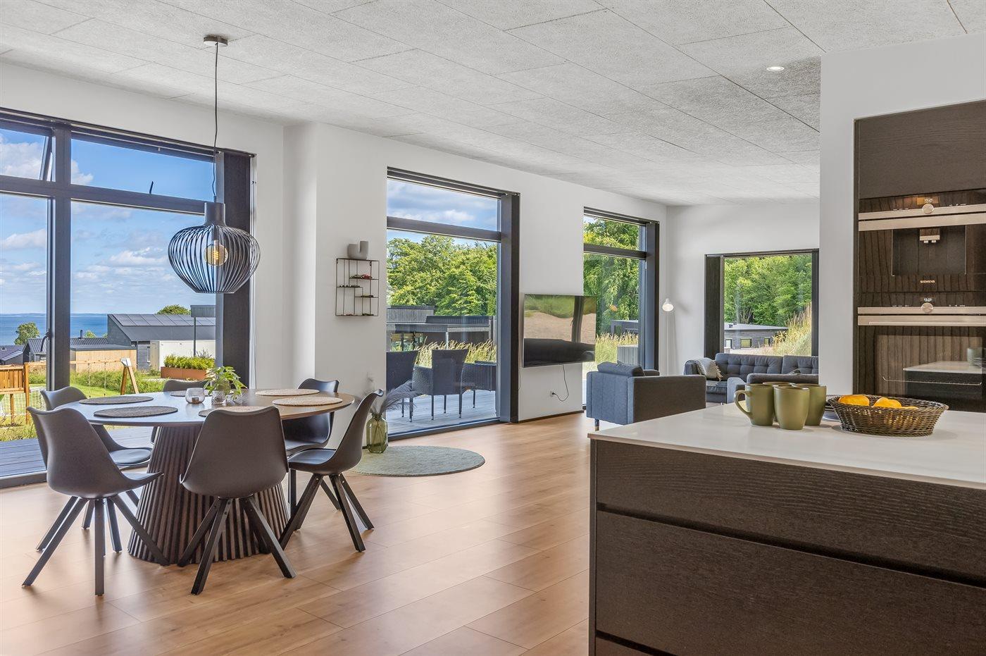 Sommerhus beliggende i Grønninghoved. Huset fra 2023 har en fantastisk udsigt til vandet. 600-700 meter fra huset er der en dejlig børnevenlig sandstrand, og på campingpladsen er der en lille købmand.