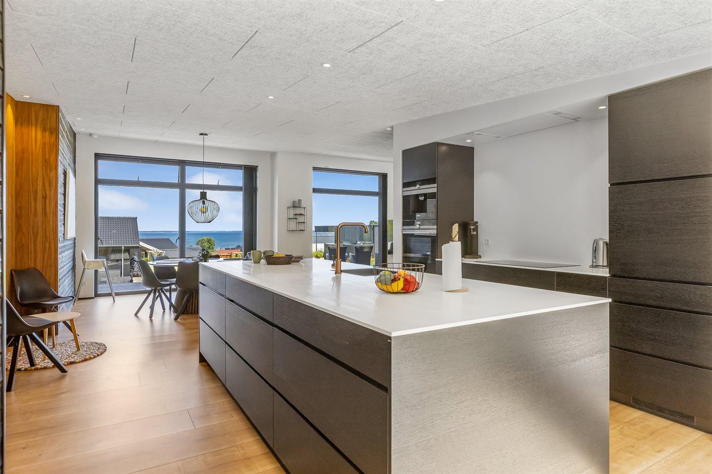 Køkkenet er udstyret med 1 køleskab. Der er 4 induktionskogeplader, varmluftovn samt opvaskemaskine.