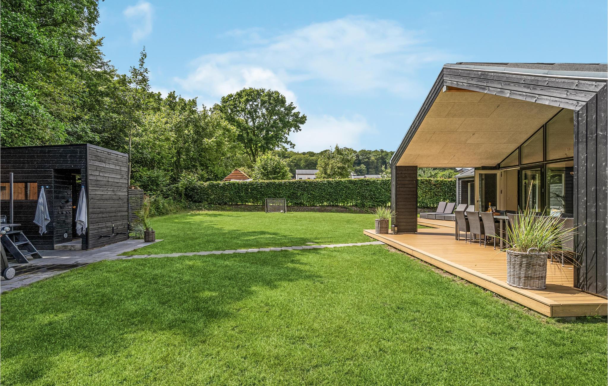Moderne sommerhus nær Grønninghoved Strand med sauna, vildmarksbad og aktiviteter for hele familien.