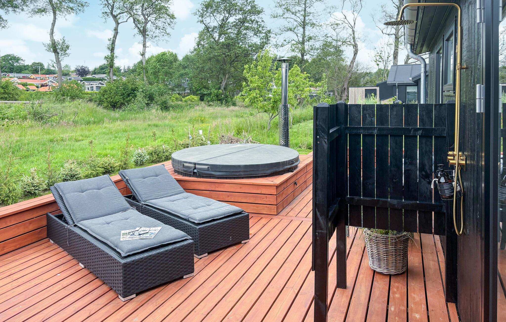 Glæd jer til haven, som lægger op til hyggestunder med grillfaciliteter, siddepladser og bålplads. Hele familien kan slappe helt af i vildmarksbadet.