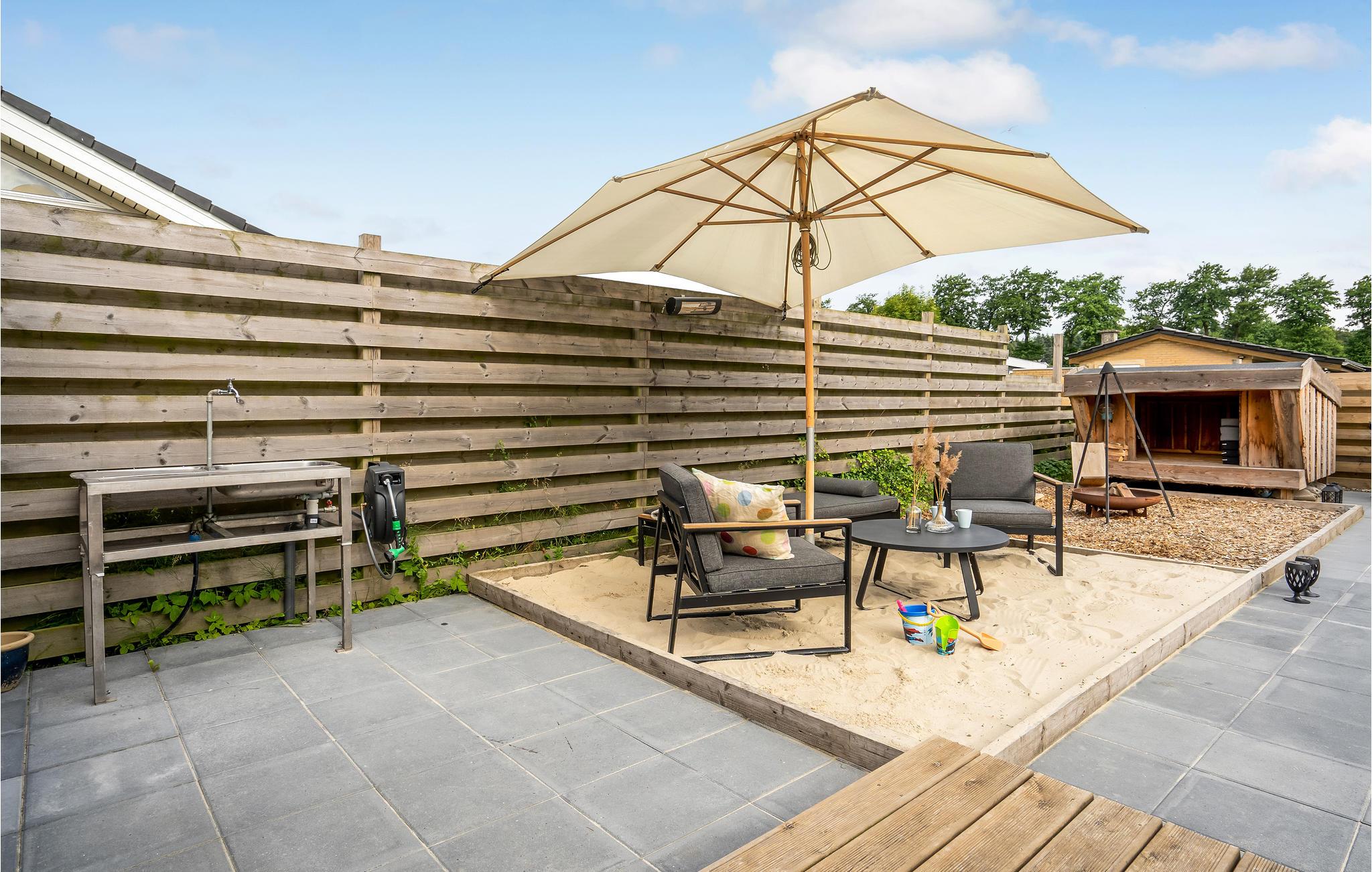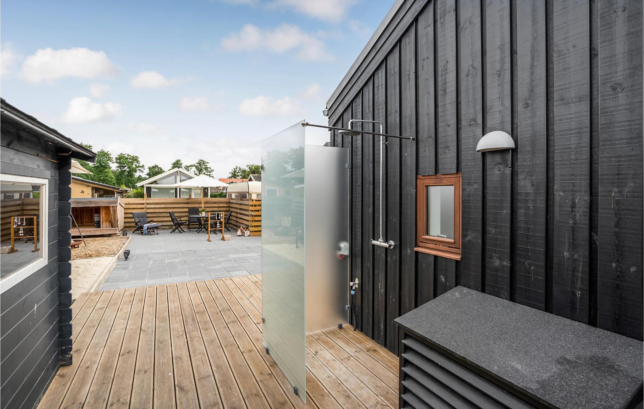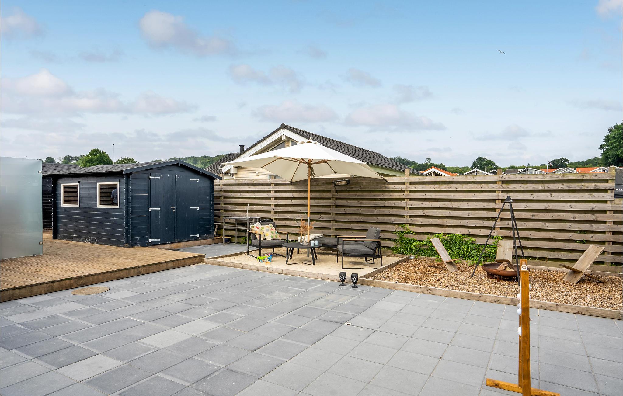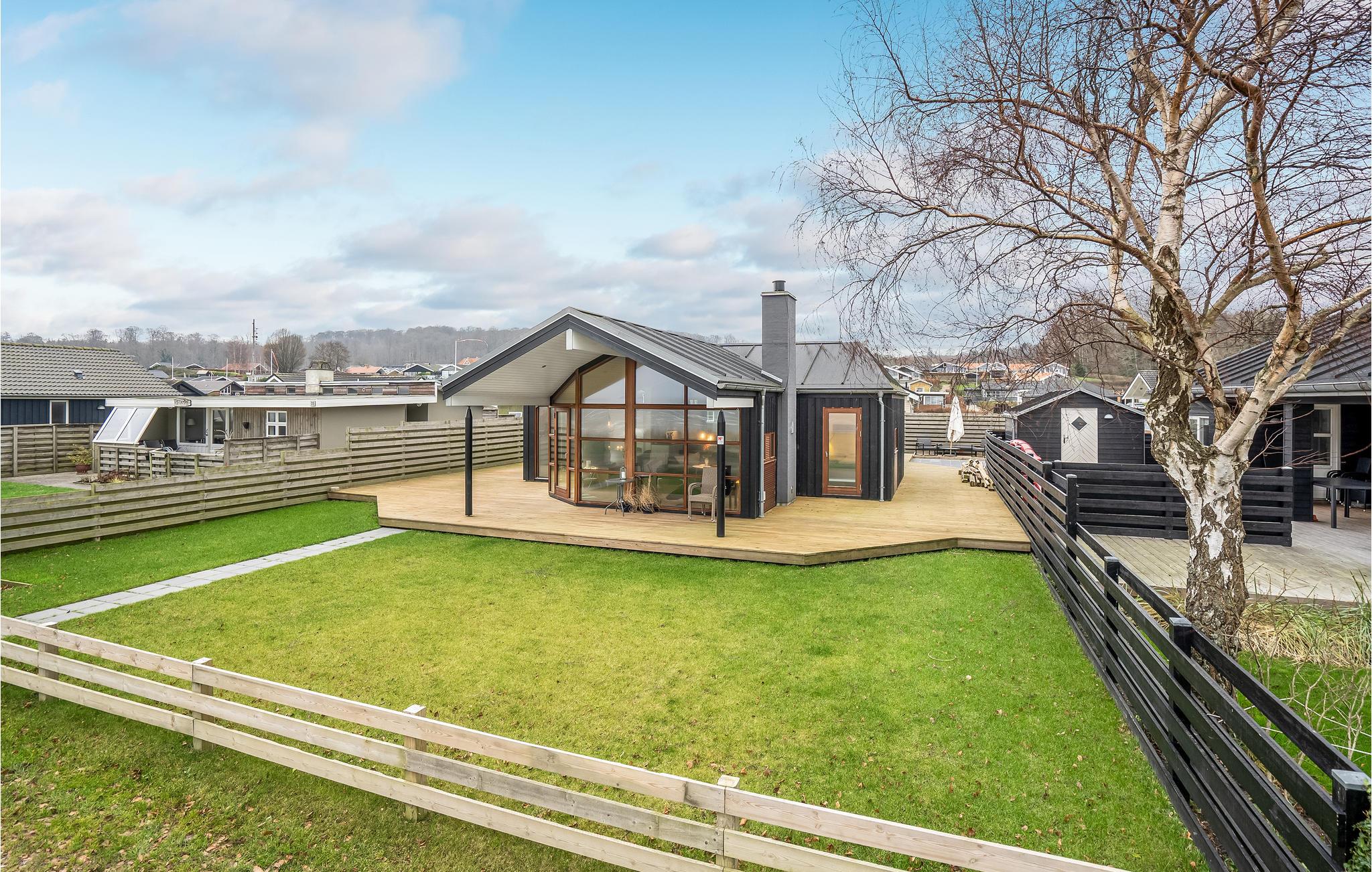 På den store træterrasse med havemøbler og grill omkring huset er det let at udholde på varme dage. Om morgenen inviterer vandet dig til at tage en forfriskende dukkert. I nærheden er det værd at tage en tur til Kolding eller Odense, hvor du finder gode indkøbsmuligheder, caféer og restauranter.