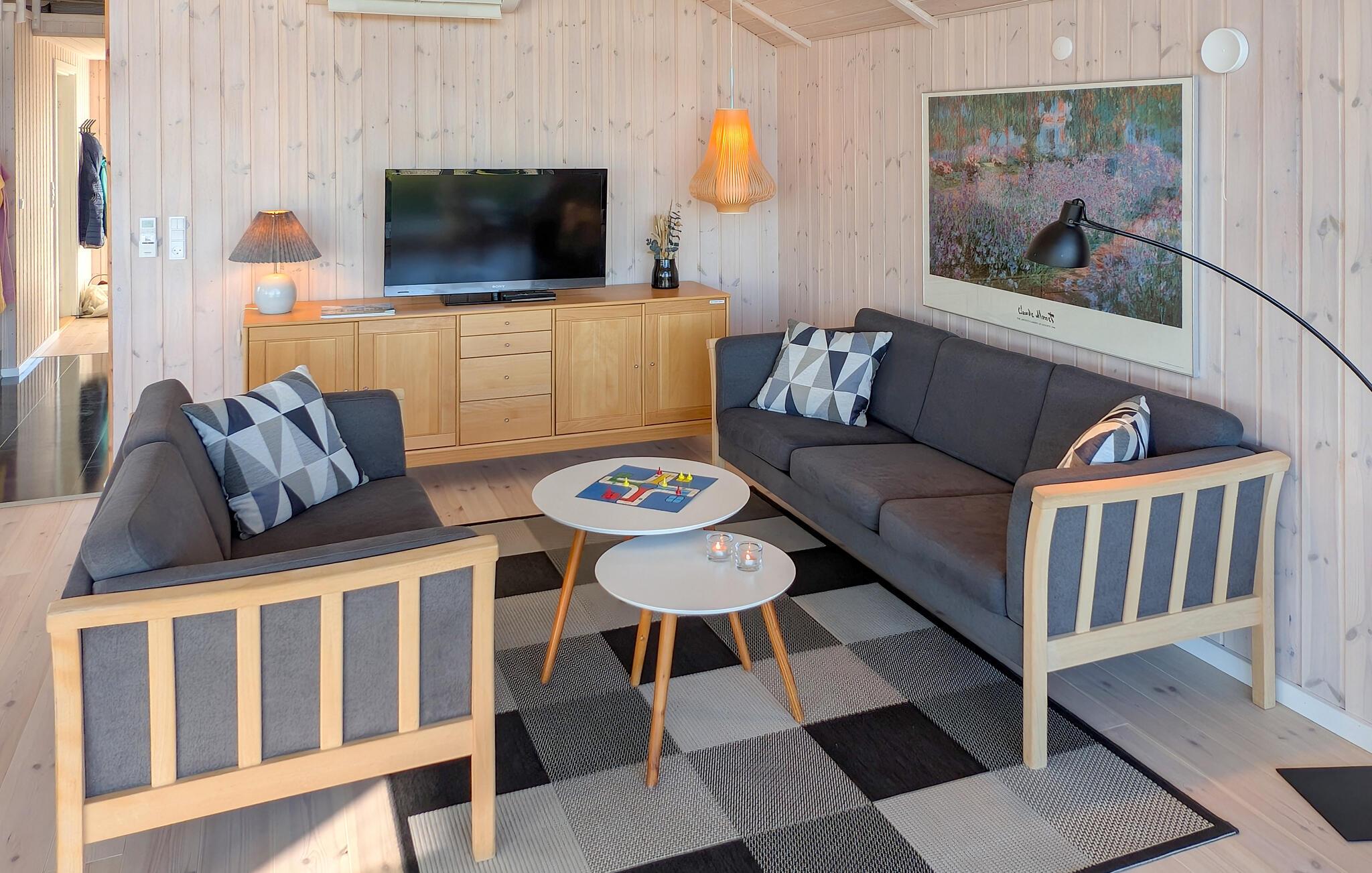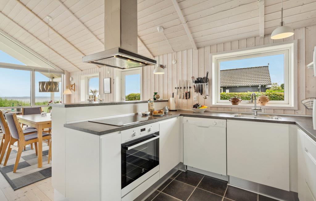 Vandet ligger nærmest for jeres fødder i dette indbydende sommerhus, som er en skøn ramme om en familieferie. Her kommer alle helt ned i tempo, for der er en særlig ro i den store stue, hvor I kan hygge jer med hver jeres aktiviteter og kigge ud på vandet. Sæt jer med en kop kaffe og en god bog, mens børnene spiller brætspil. På de lune sommeraftener kan I dække op til aftensmaden på terrassen og lytte til havet, mens I spiser.