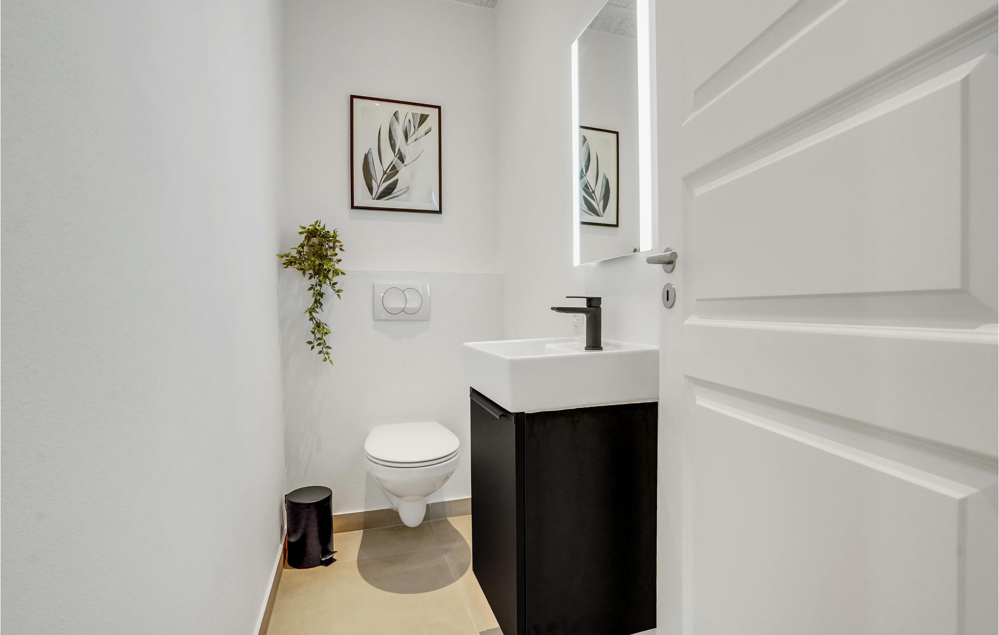 Badeværelse (nr. 1) - WC. Varmt og koldt vand. Bruser
